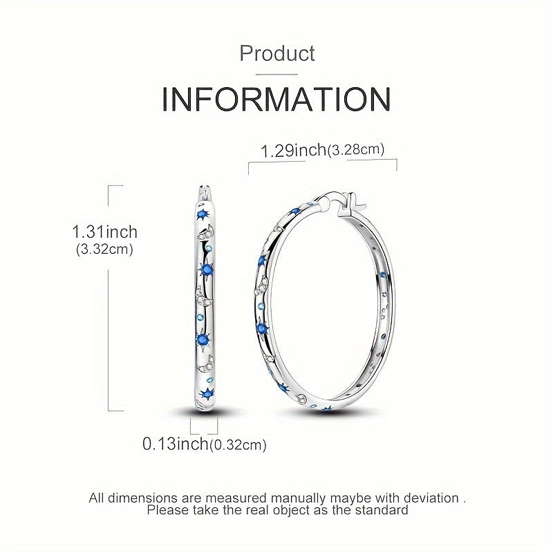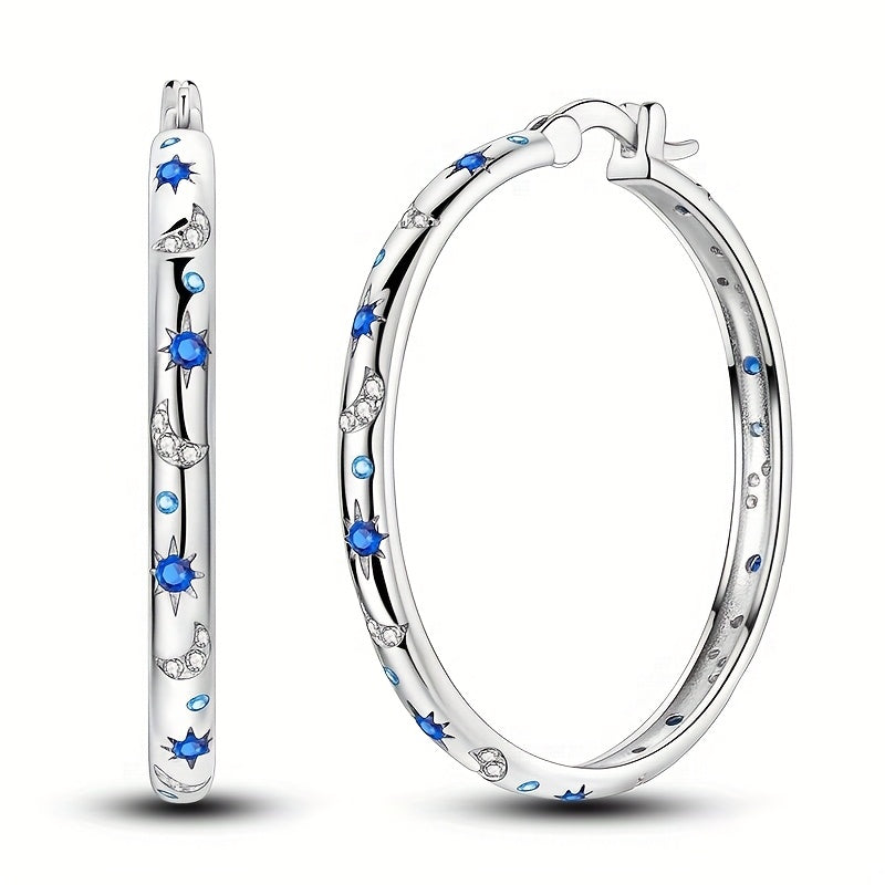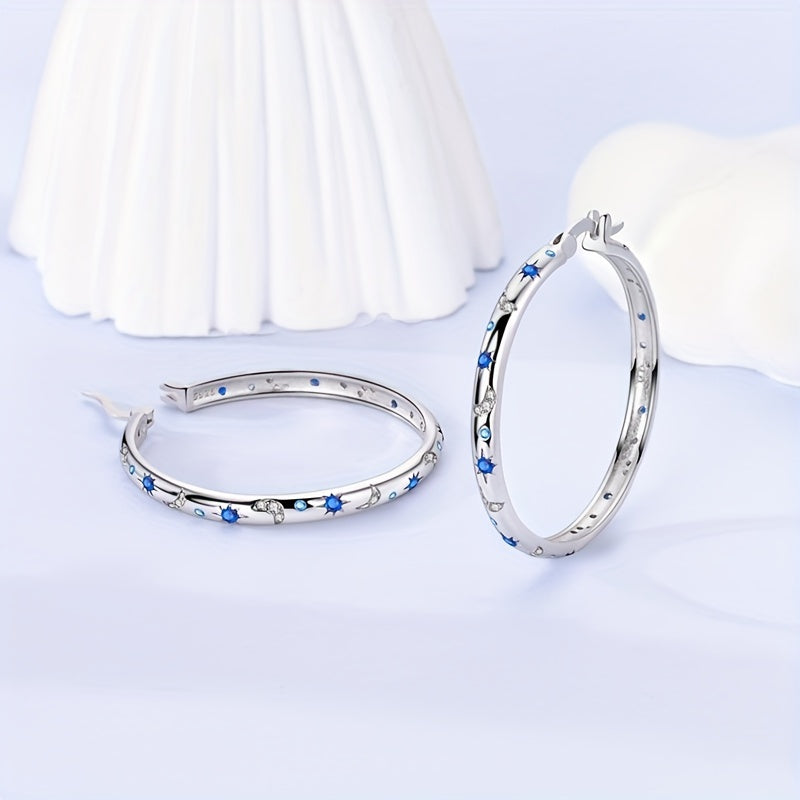 925 Silver Hoop Earrings CZ Starry Night Sexy Jewelry Women Birthday Wedding