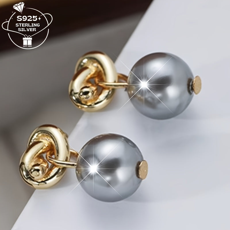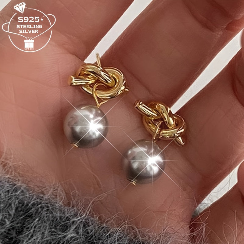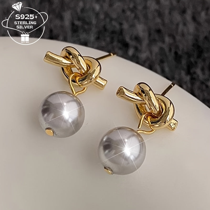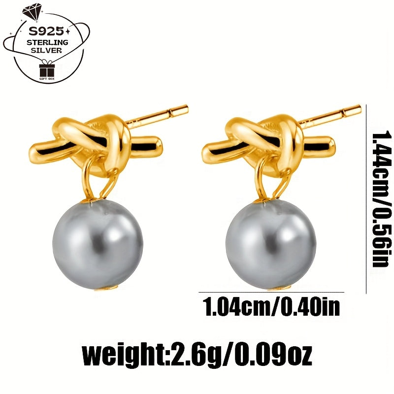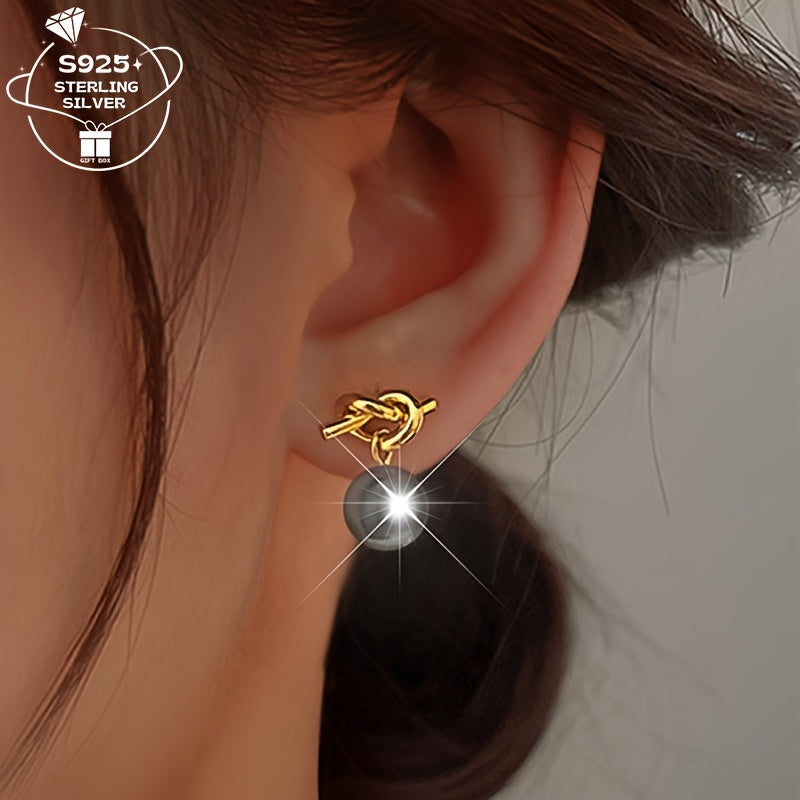 Elegant and classic 925 silver earrings featuring knotted imitation pearls and a pop of jade. Perfect for a vintage look.