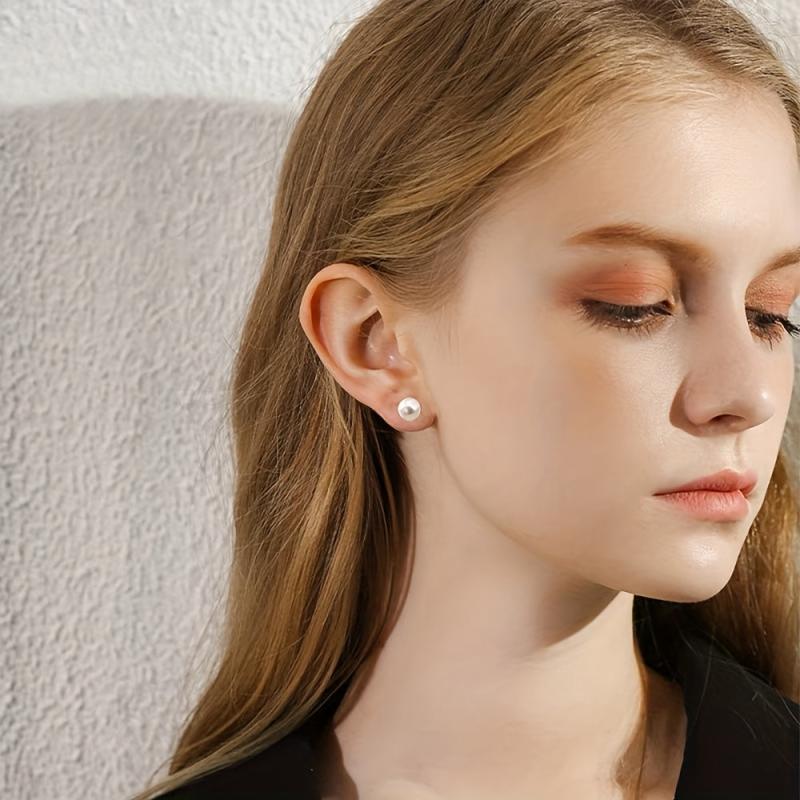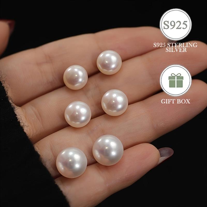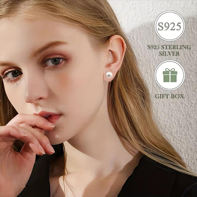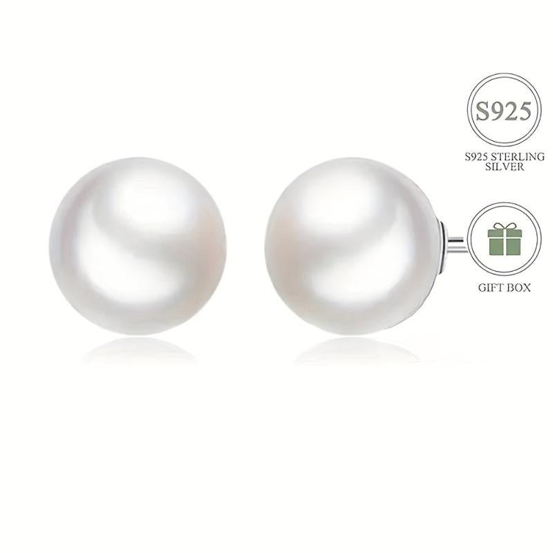Elegant French style pearl stud earrings made of 925 sterling silver with a gold plated finish. Perfect for daily wear or gifting on Valentine's Day.