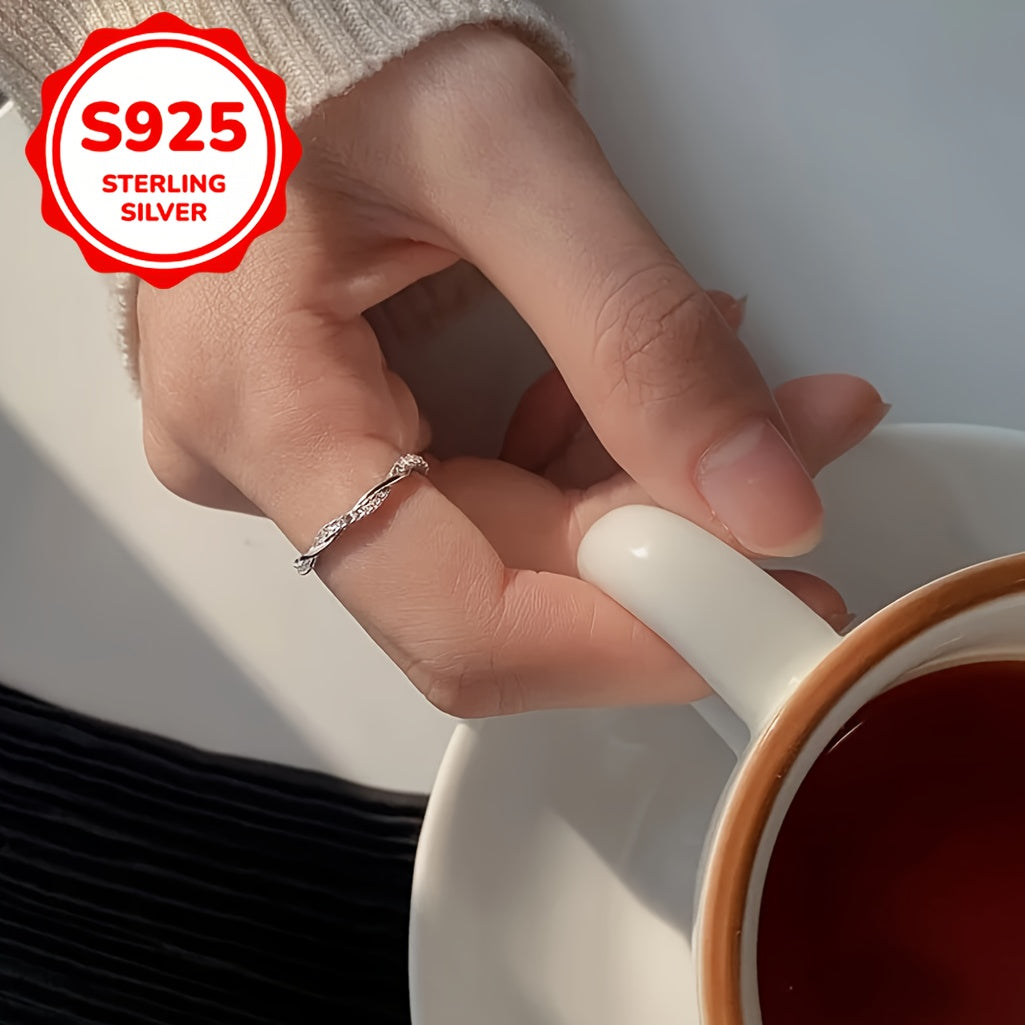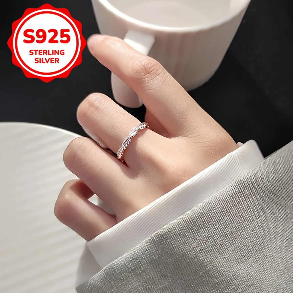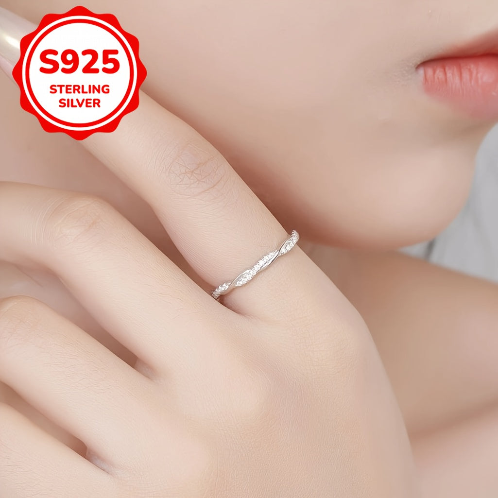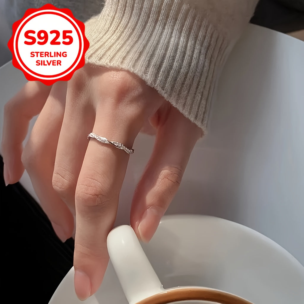 This stunning 925 sterling silver ring features an infinity symbol design adorned with sparkling zirconia. Elegant hand ornament for women that makes a perfect gift.