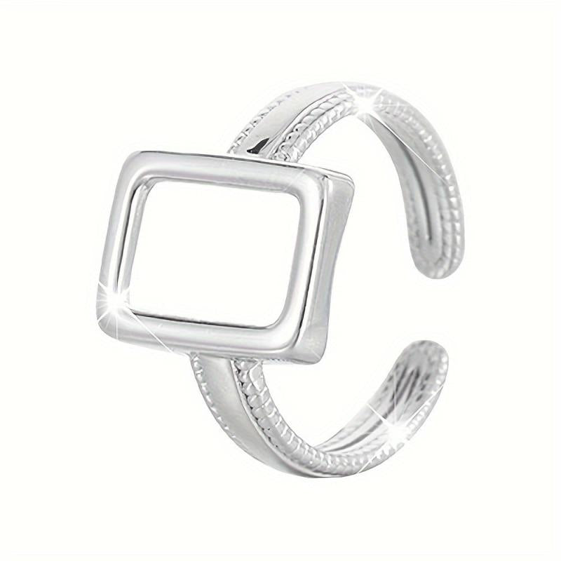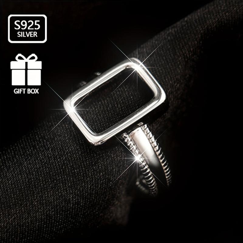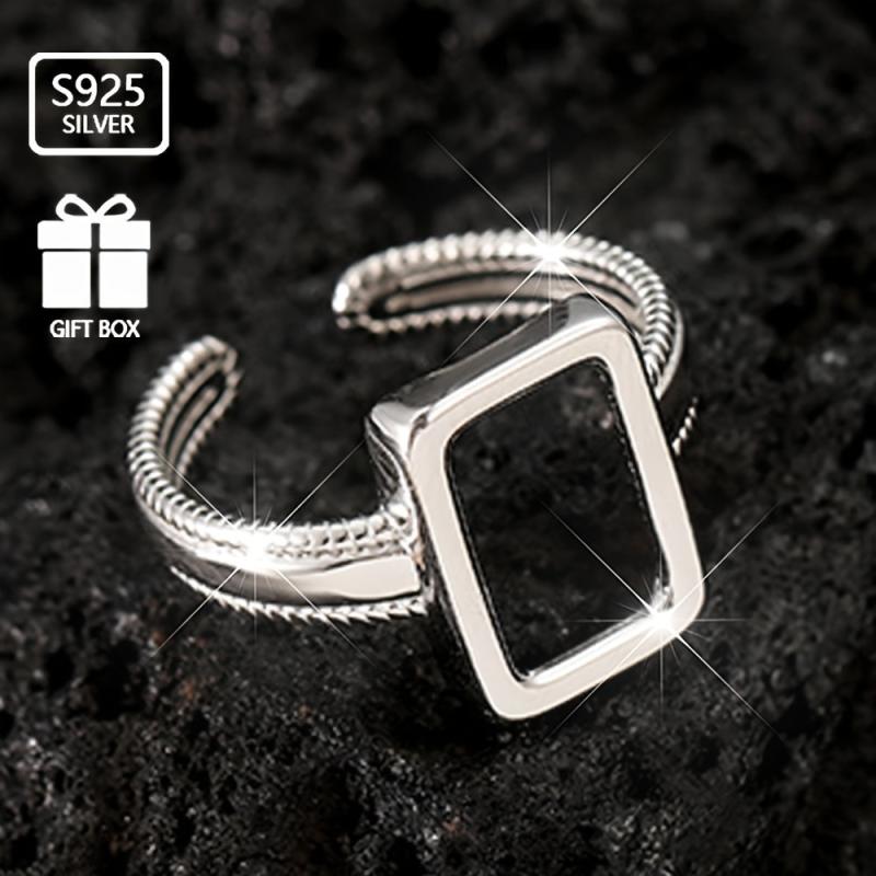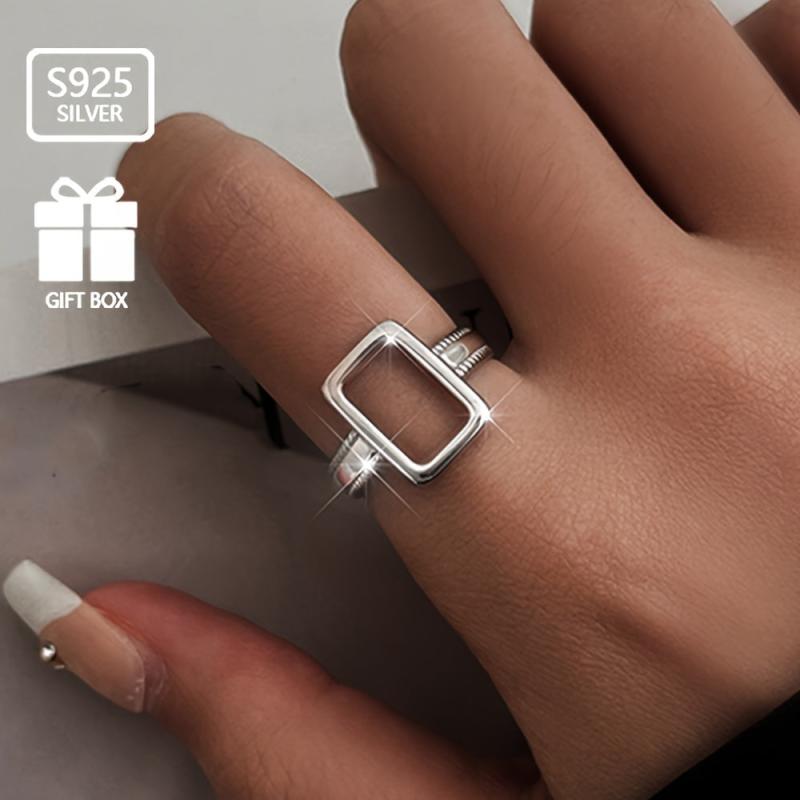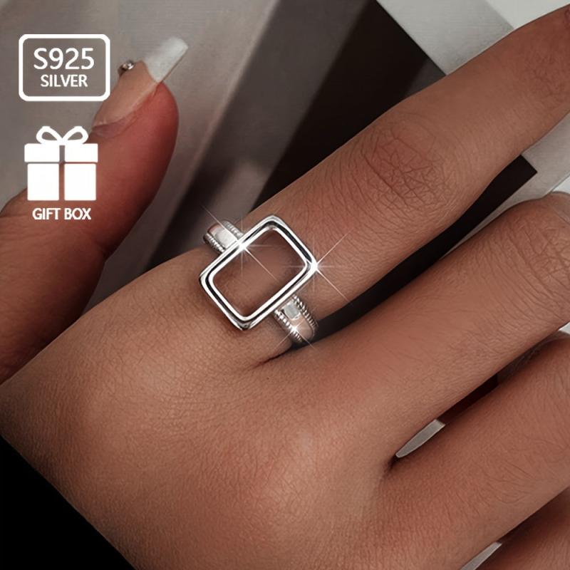 This 925 silver ring features a retro design with a hollow square opening, perfect for daily wear or as a small surprise gift. It is a versatile piece suitable for any occasion.