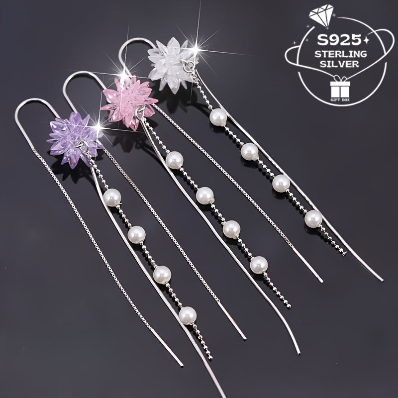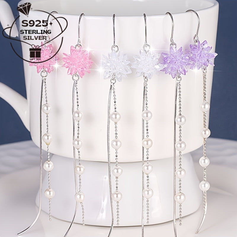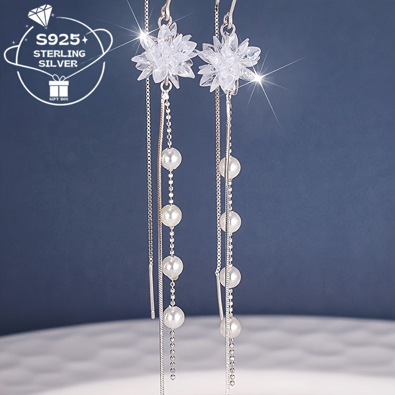 Add a touch of elegance with these long ice flower freshwater pearl earrings. The icy design adds a sexy twist to your outfit.