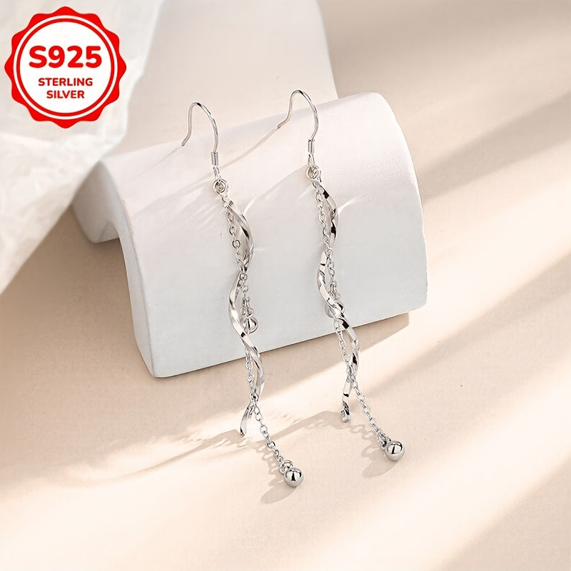 Stylish long tassel earrings crafted from 925 silver, perfect for everyday wear.