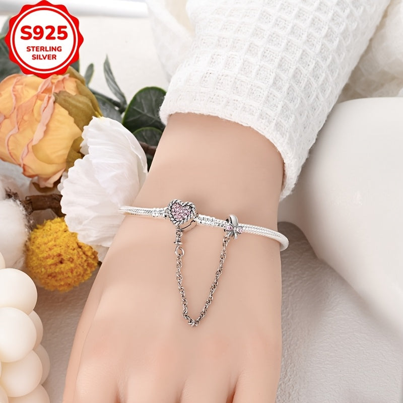 925 Silver Love & Bow Bracelet for Charm Beads DIY, Women's Gift