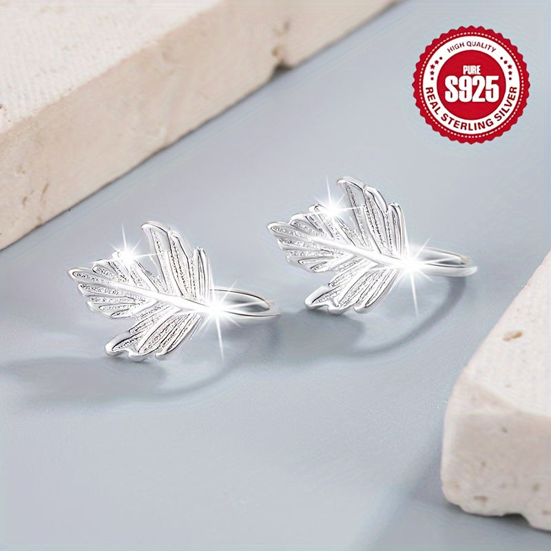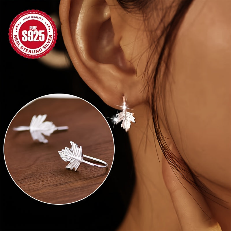 These hypoallergenic silver earrings feature a pair of maple leaf ear hooks perfect for adding a touch of nature-inspired style to your look. Ideal for couples and versatile for any occasion.