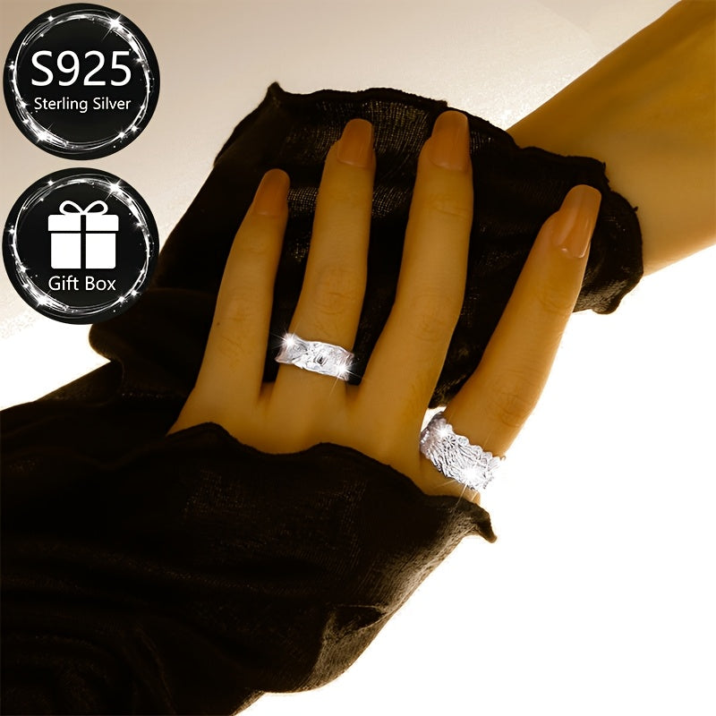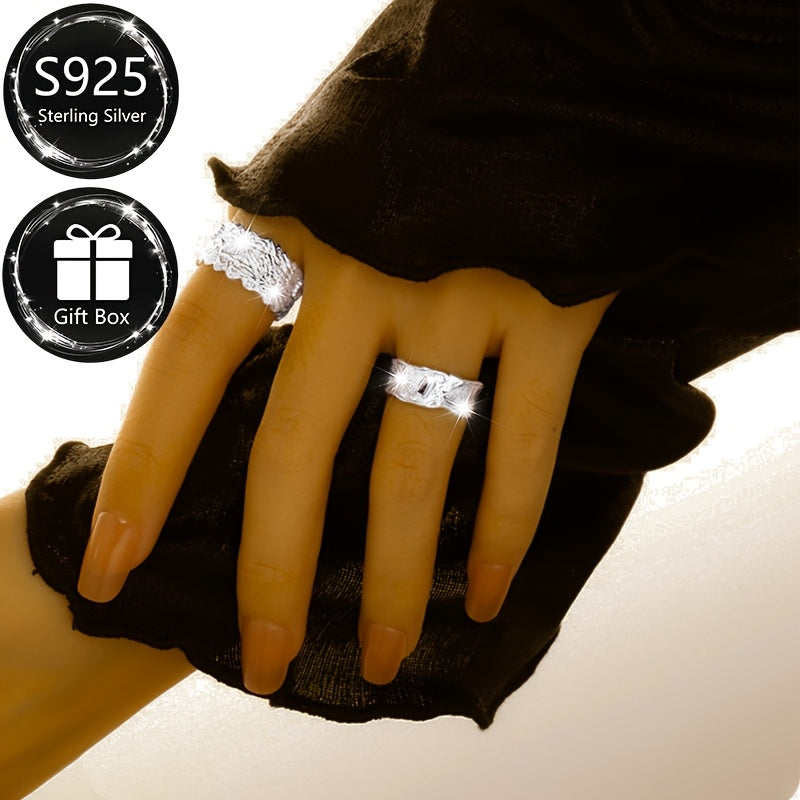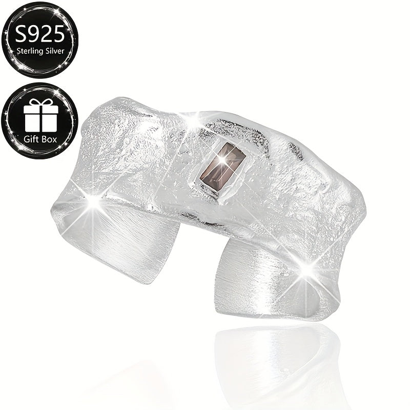 Add a touch of vintage glamour to your look with this 925 silver open ring featuring a square Zirconia inlay. Perfect for daily wear or special occasions.