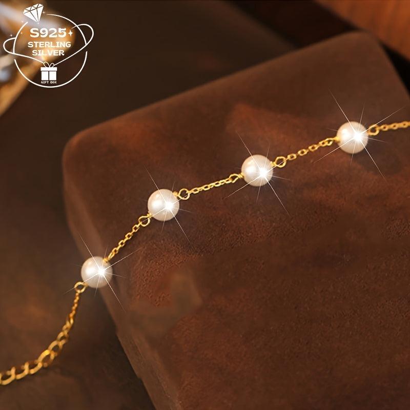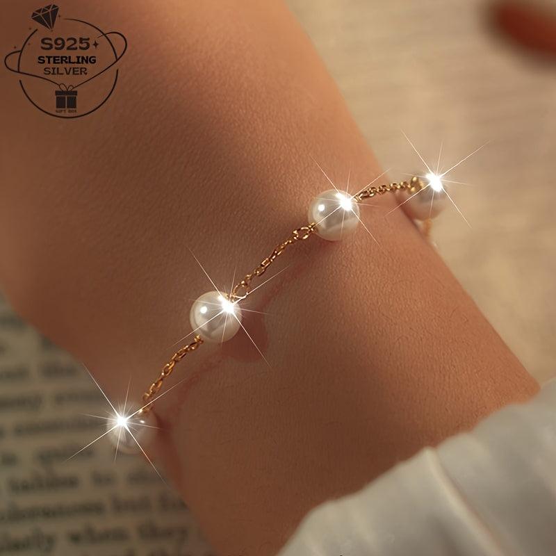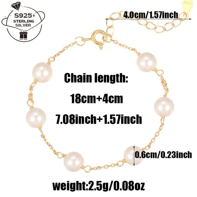 925 Silver Pearl Shell Bead Adjustable Bracelet for Women