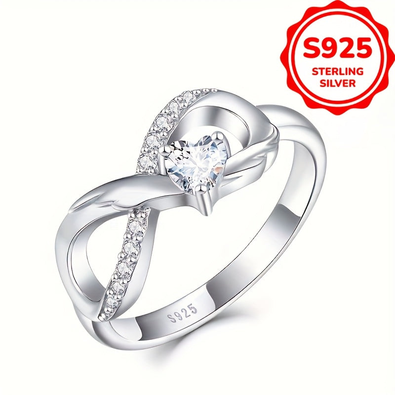925 Silver Promise Ring Infinity Paved Zirconia Wedding Jewelry