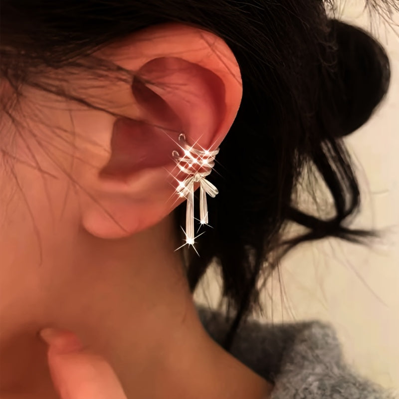 These ballet girl style ear clips are sweet, light, and perfect for Halloween. They are unique and minimalist, making them a trendy accessory.