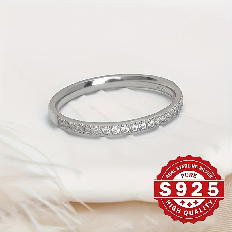 Elegant sterling silver ring featuring synthetic cubic zirconia, perfect for daily wear and vacation. Makes a great Valentine's gift.