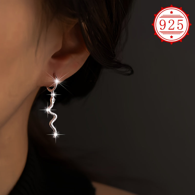 Elegant snake-shaped earrings perfect for daily wear, weddings, banquets, and beach vacations. Made from 925 silver, suitable for sensitive ears.