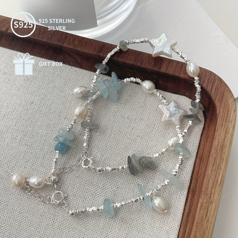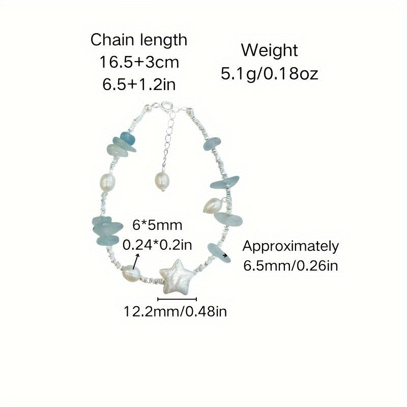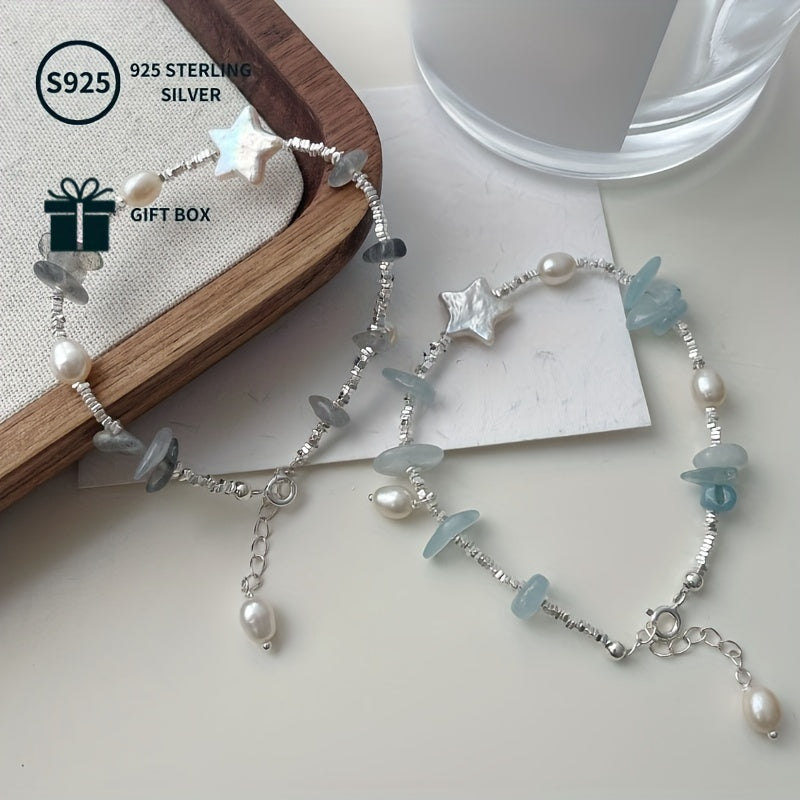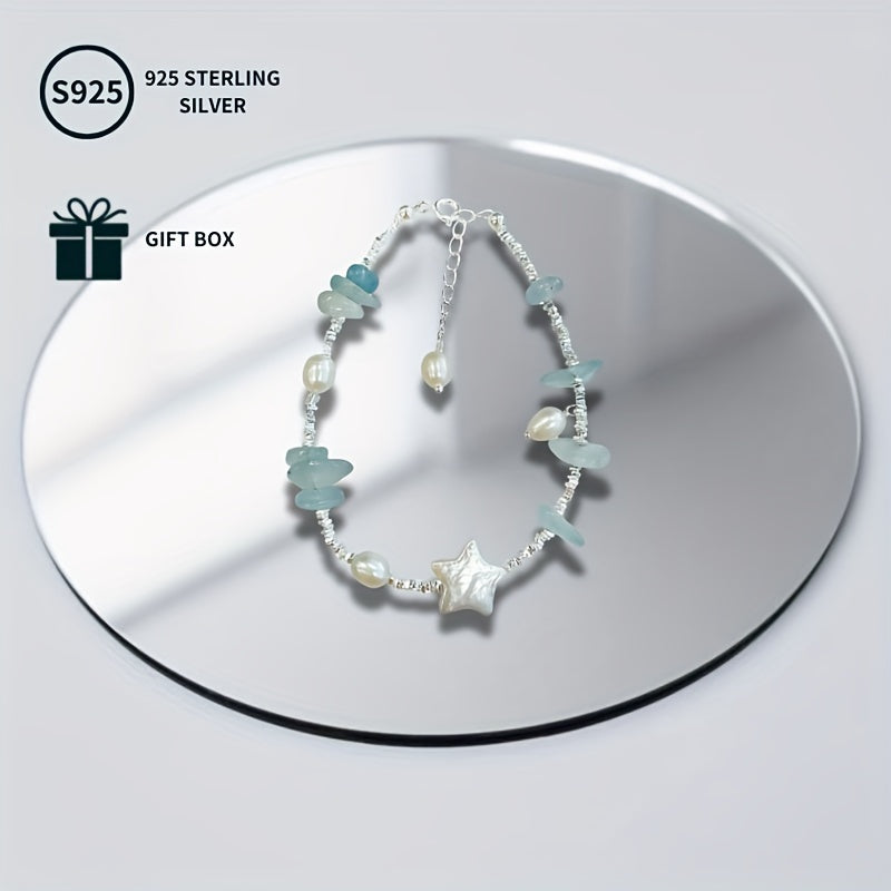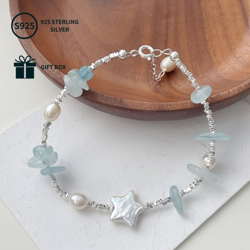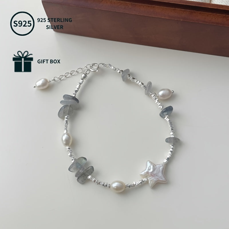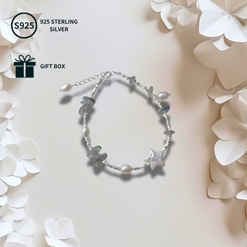 Get ready for school with this stunning 925 sterling silver bracelet featuring a crushed stone star pearl design. Perfect for travel and vacation wear.