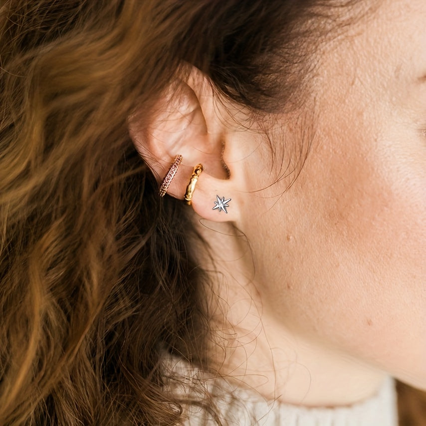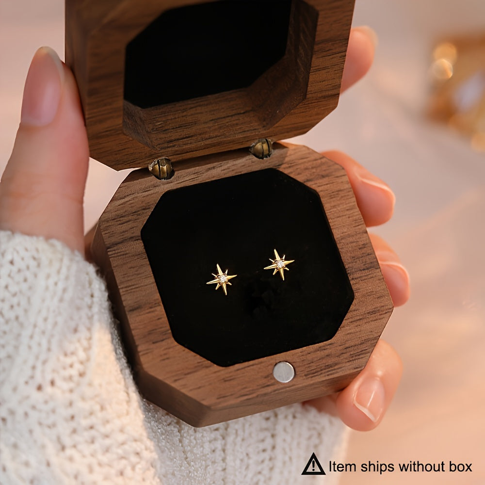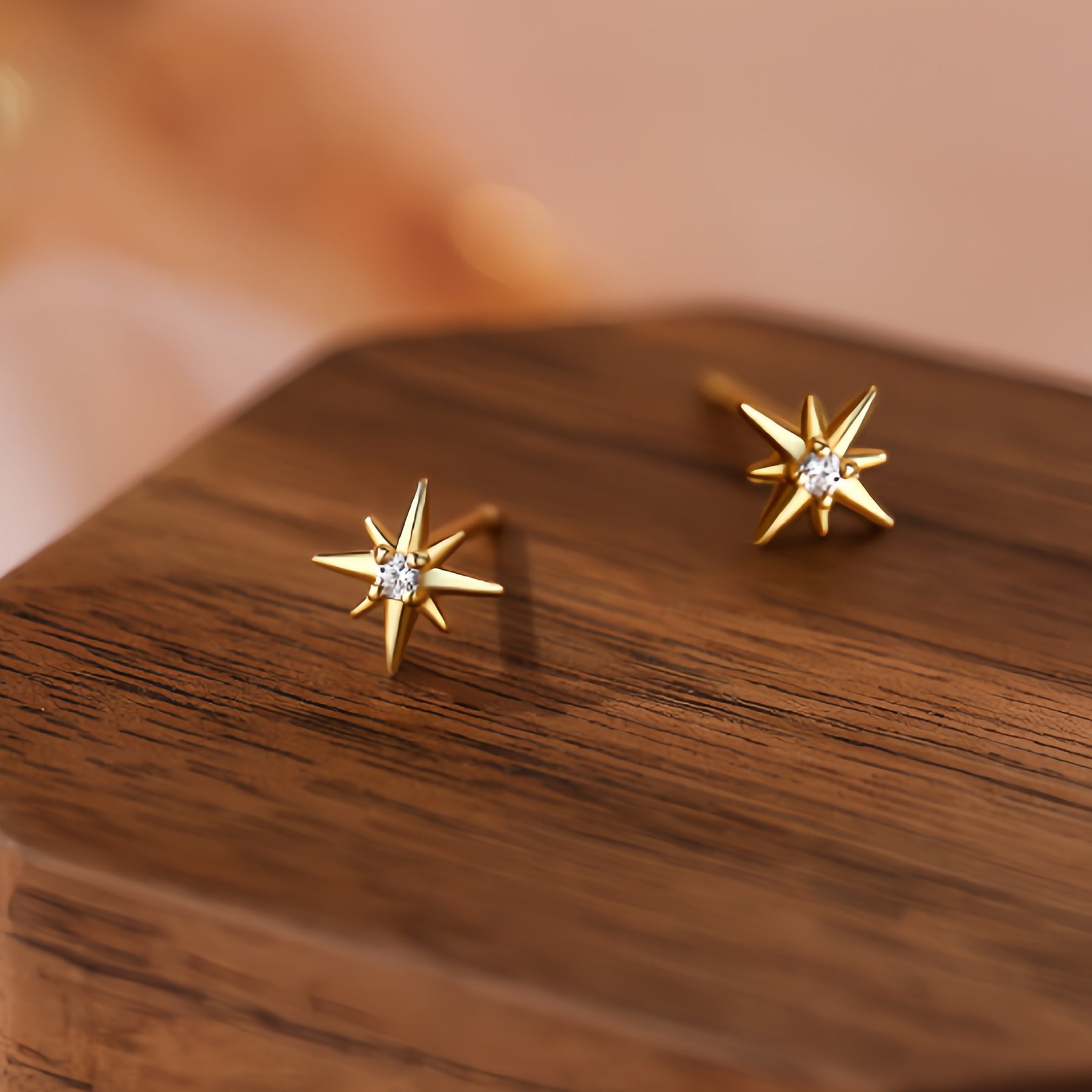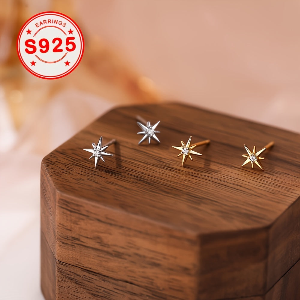 These 925 sterling silver star stud earrings feature synthetic zirconia, perfect for daily wear and as a gift. The hypoallergenic design ensures comfort and style.