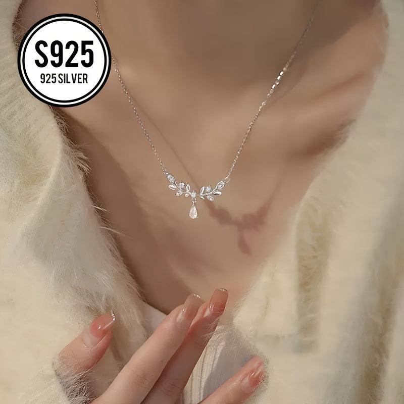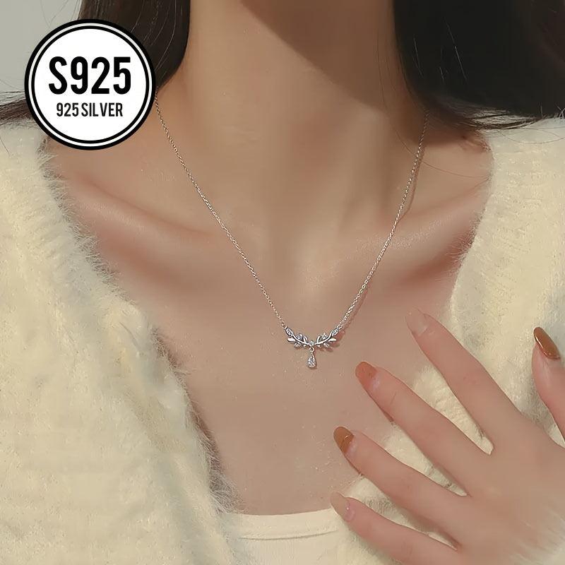 This 925 silver necklace features a wheat ear pendant, perfect for a high-end look. Great gift for besties or couples. Ideal for daily wear with a touch of elegance.