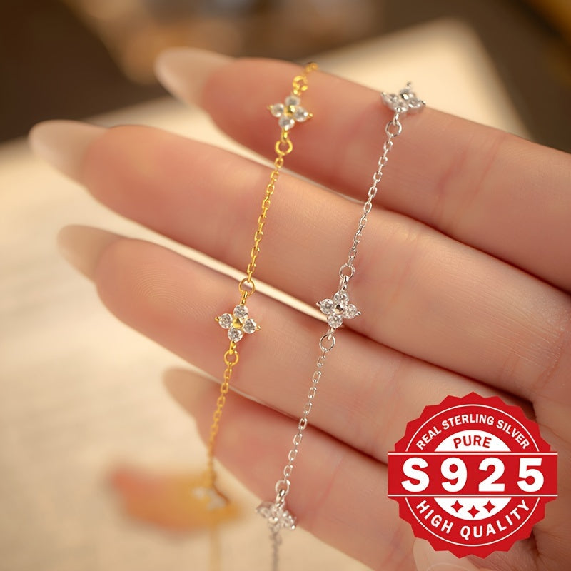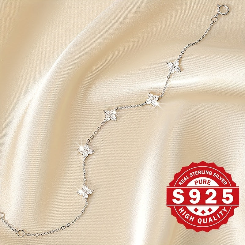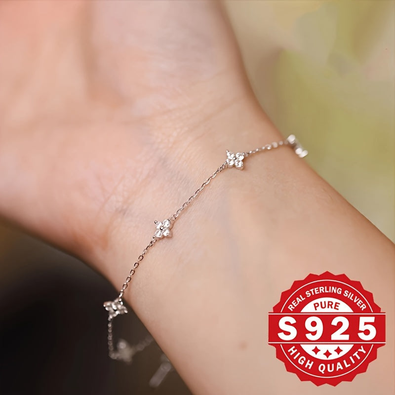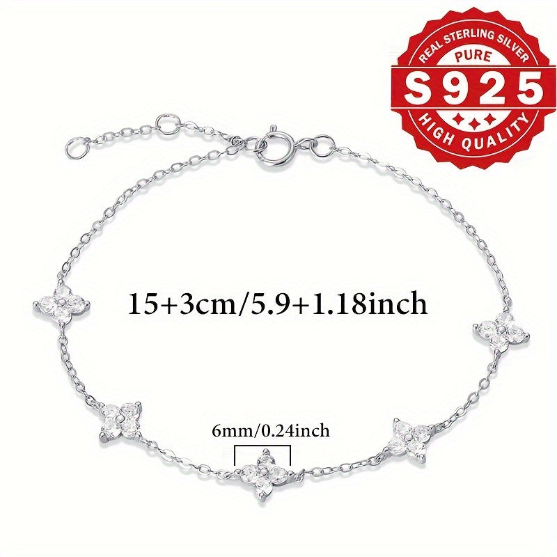 This elegant women's bracelet is made of hypoallergenic 925 silver and features a delicate four leaf clover design. It is a perfect accessory for various occasions and can also be a great graduation gift.