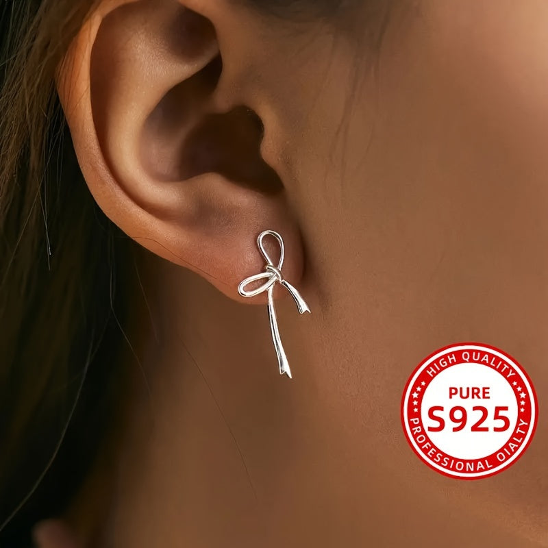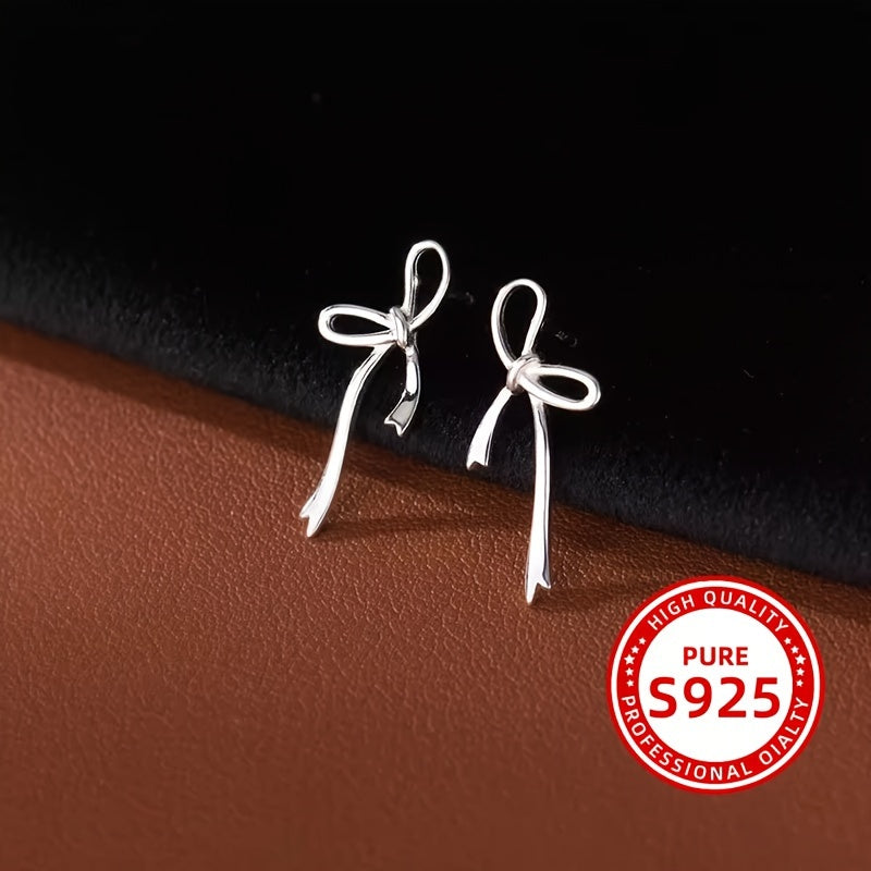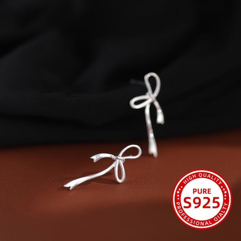 These sterling silver earrings feature an irregular bow shape, making them a charming and versatile accessory for everyday use. They are designed to be low allergy, suitable for sensitive ears.