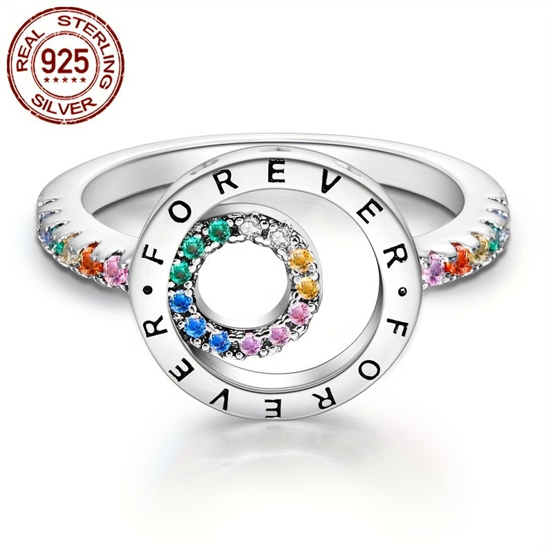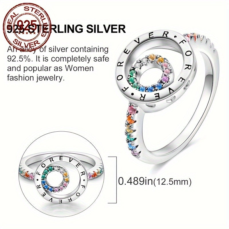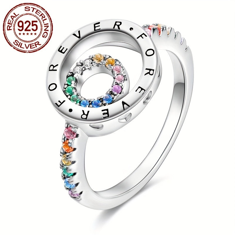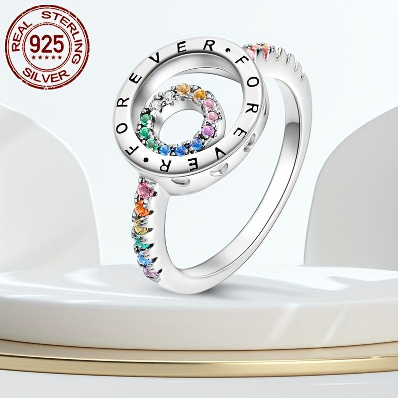 925 Sterling Silver Double Ring with Zirconia Inset, Hypoallergenic