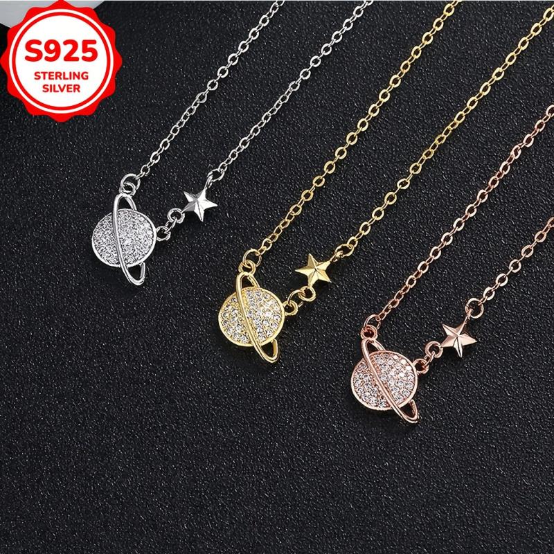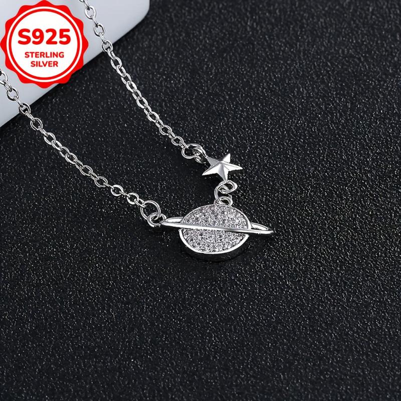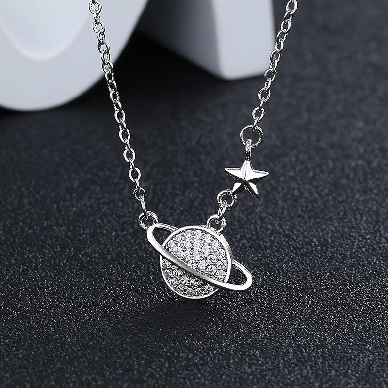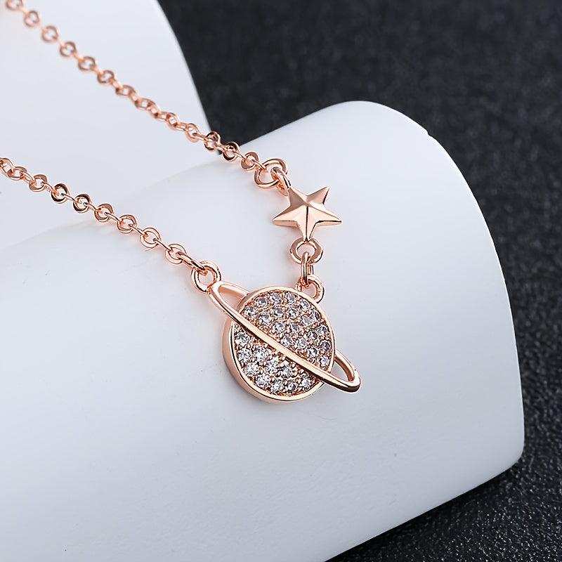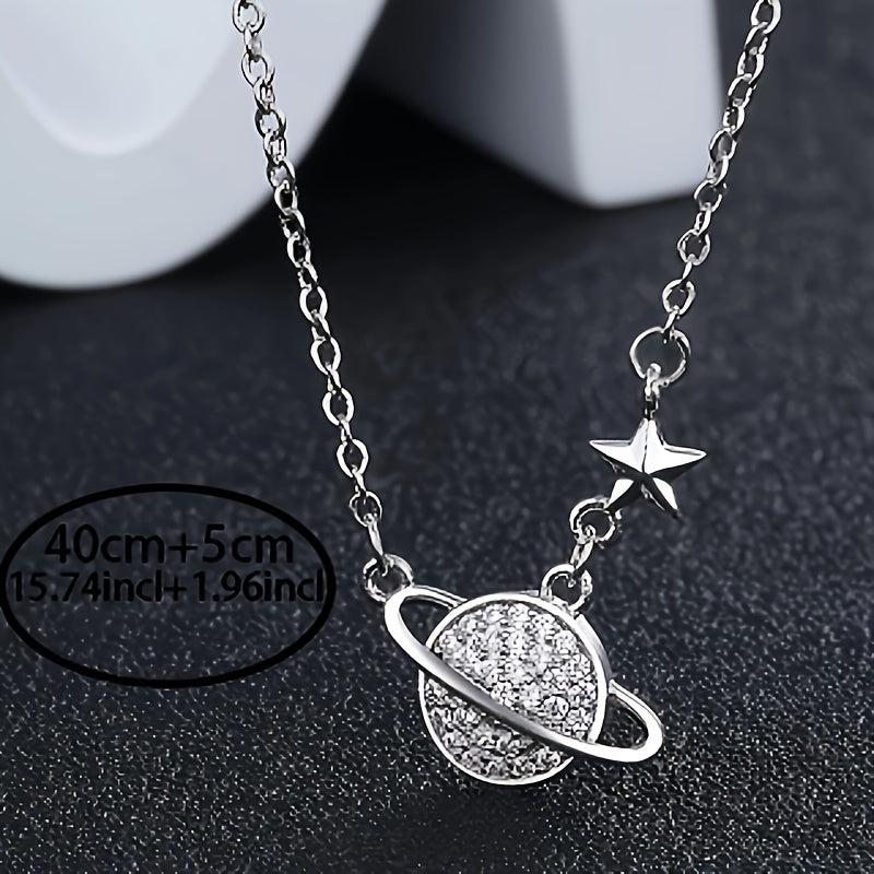 925 Sterling Silver Dreamy Planet Necklace with Cubic Zirconia Earth Pendant