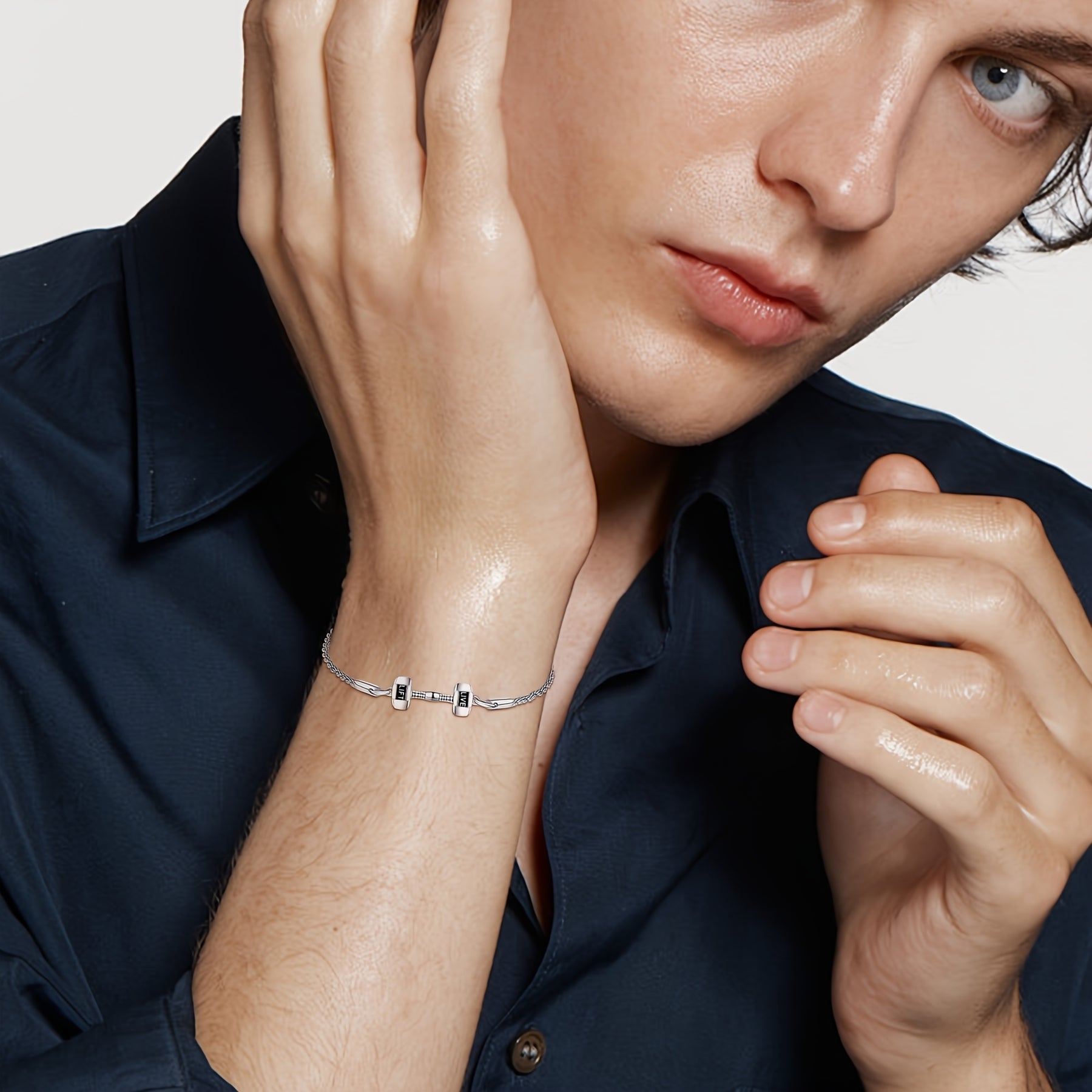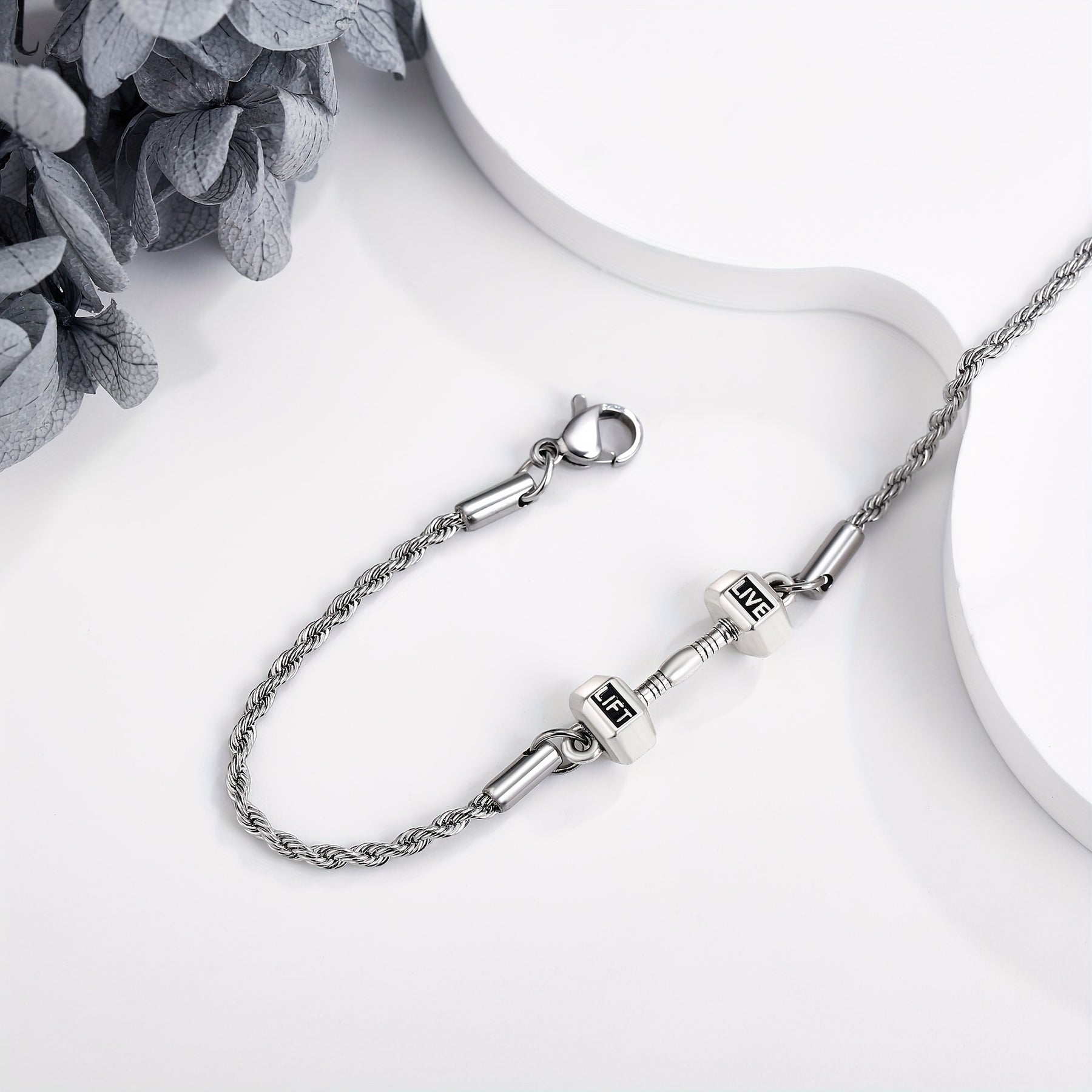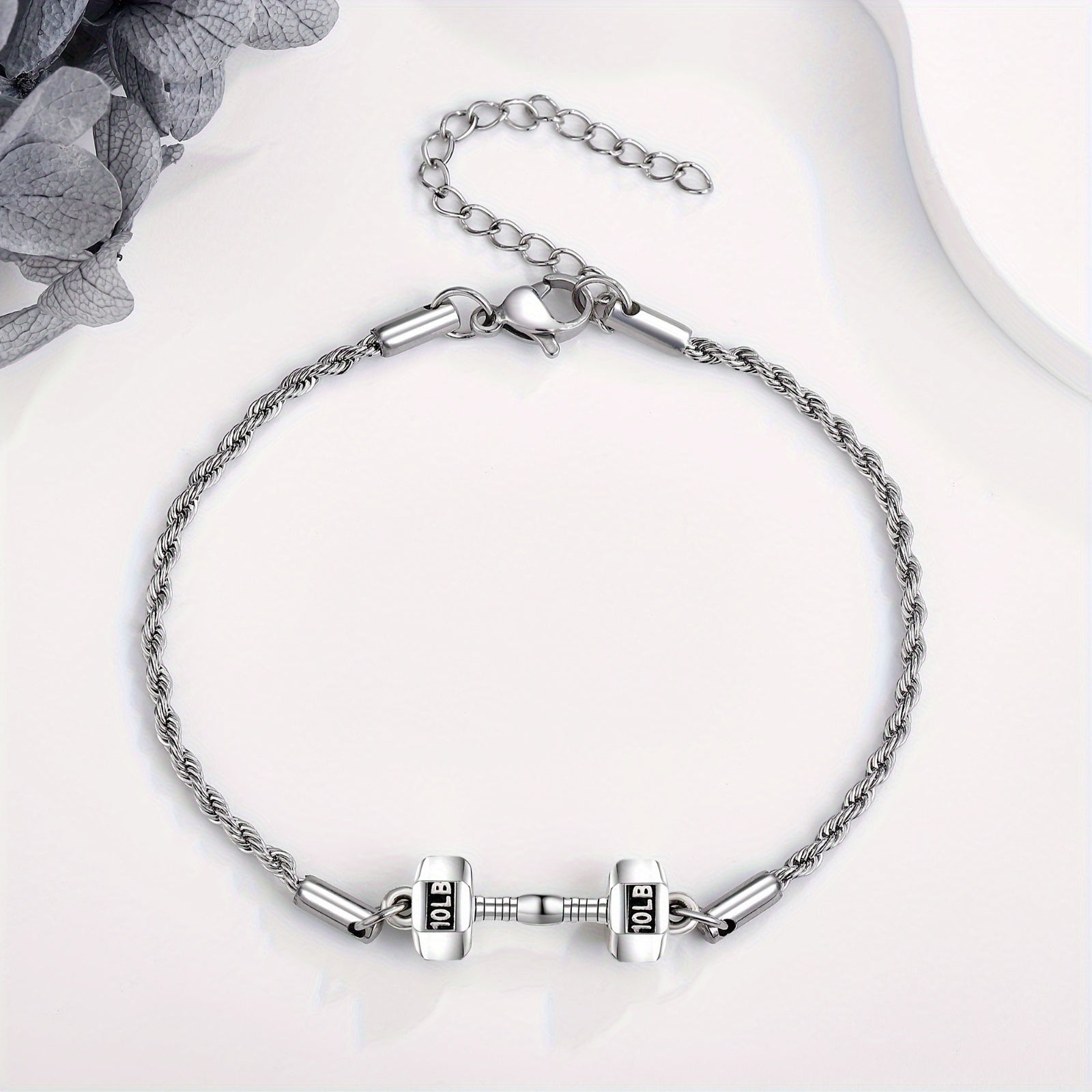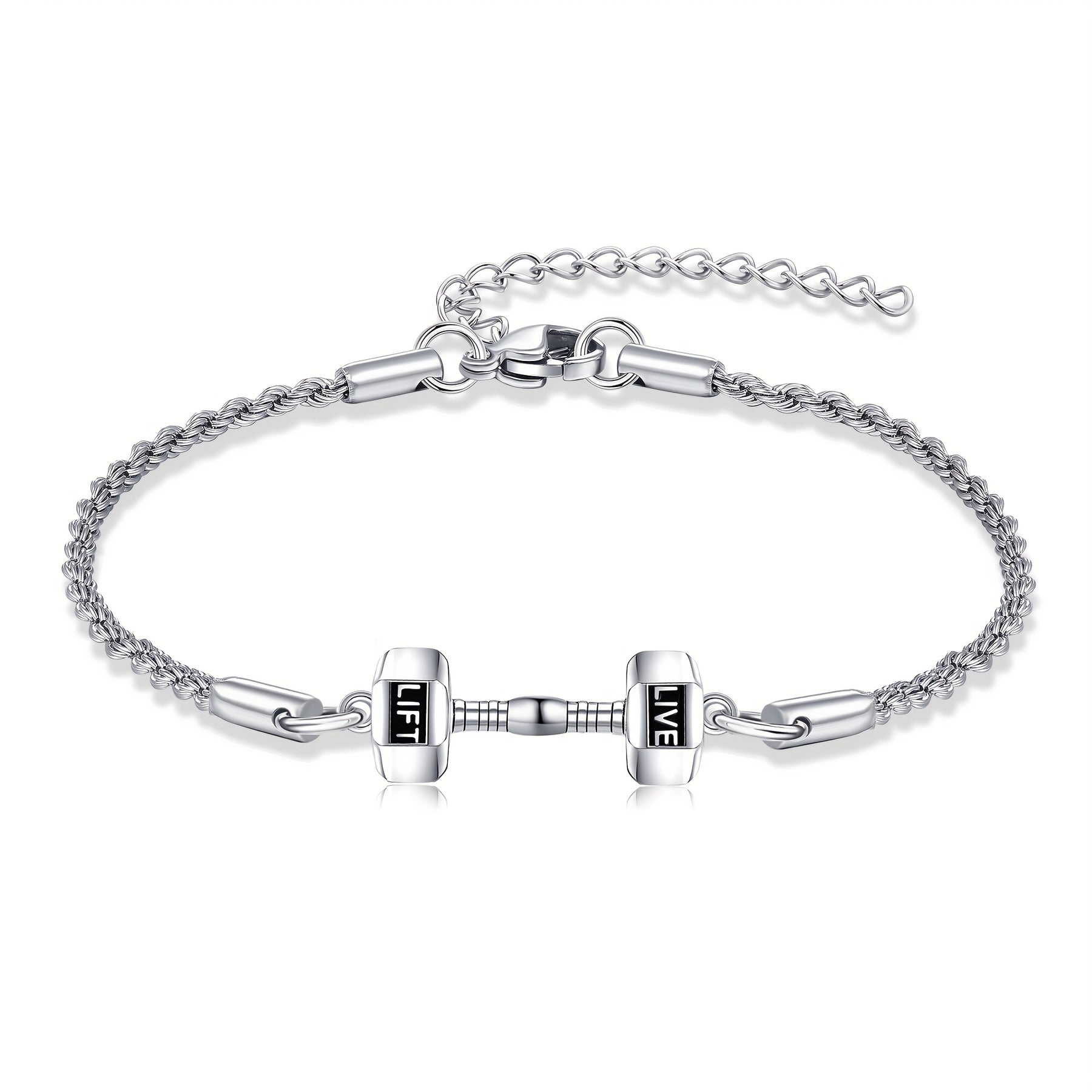 This dumbell bracelet is made of 925 sterling silver and weighted at 4.54KG. Perfect for men and women who love sports and fitness.
