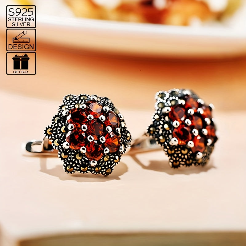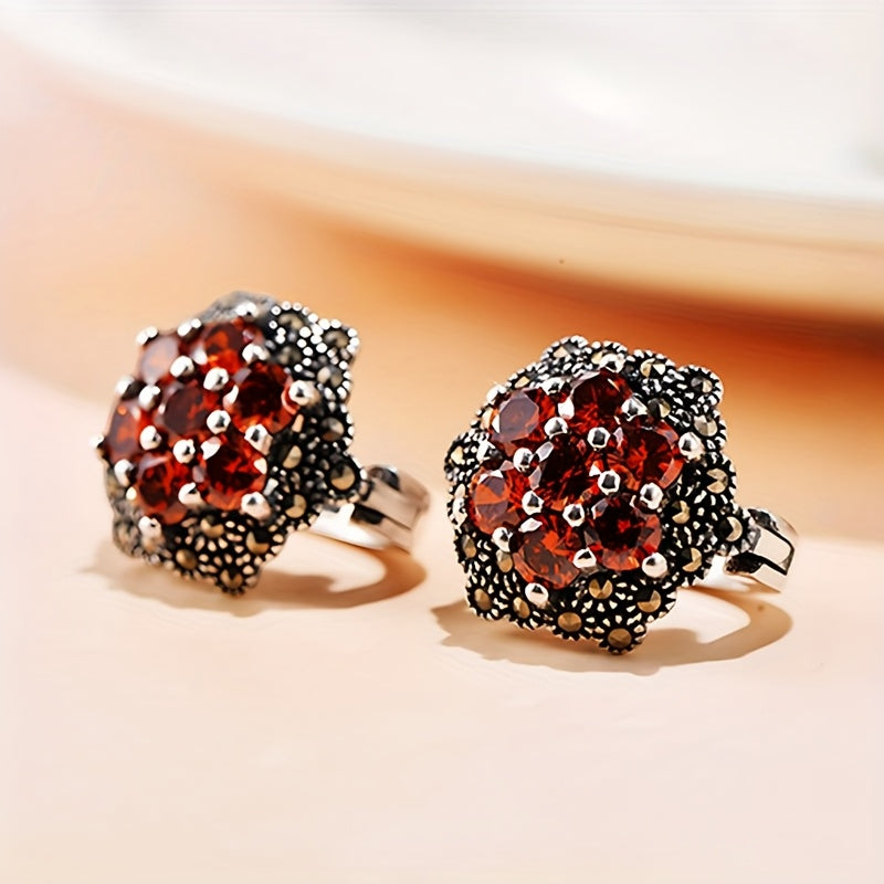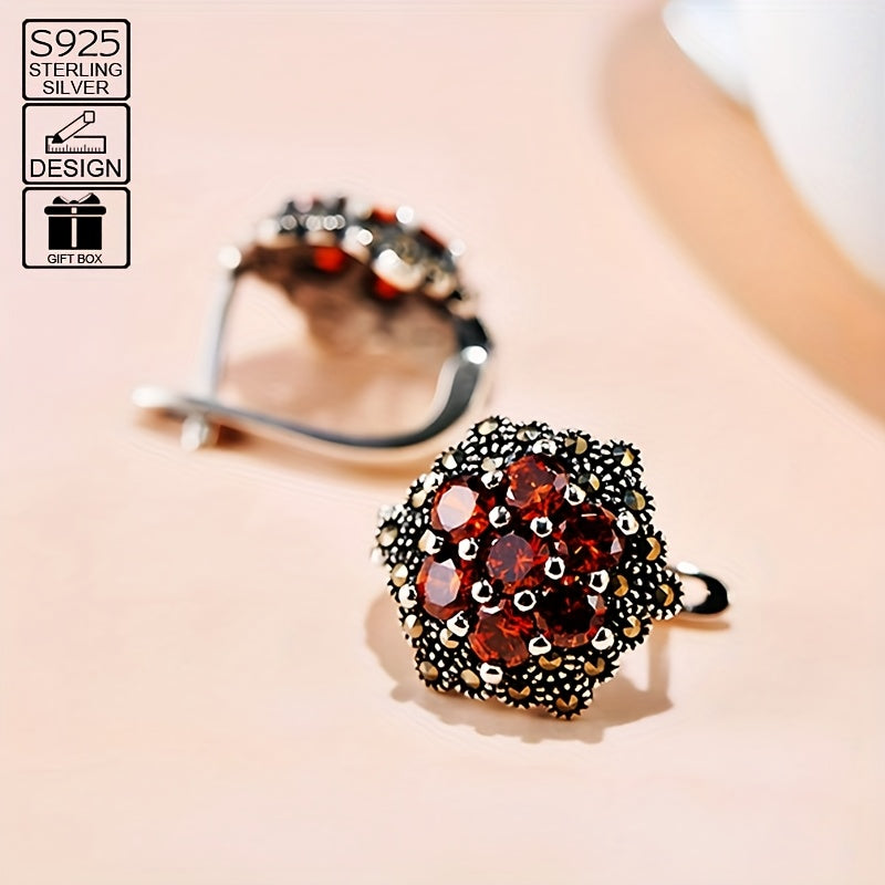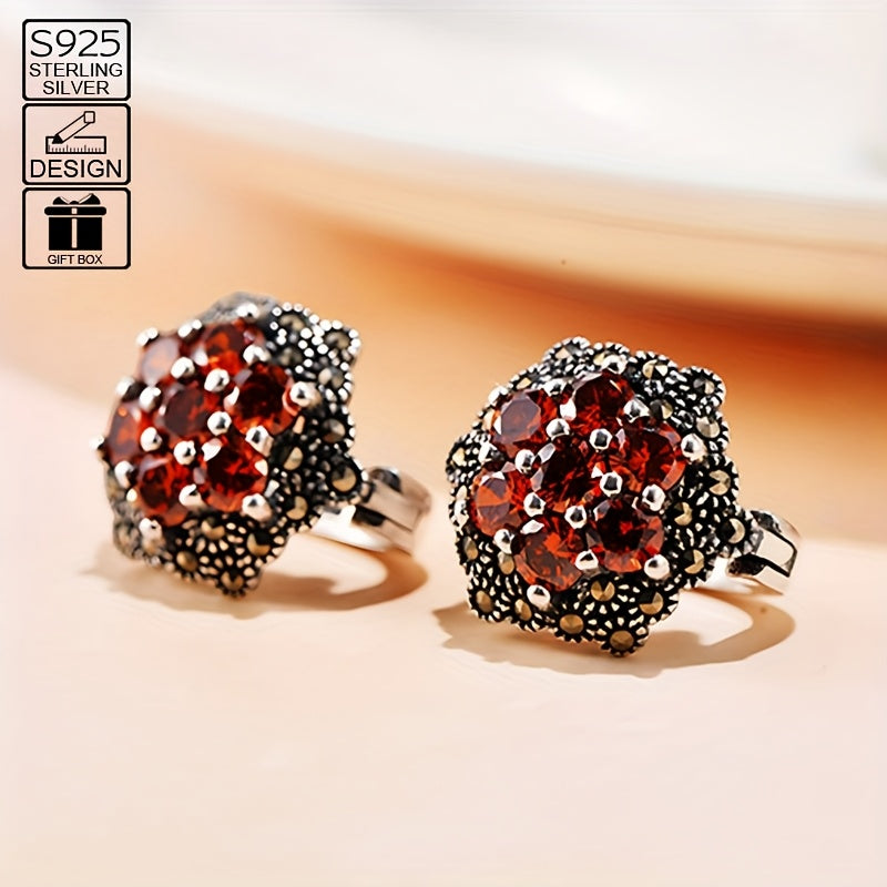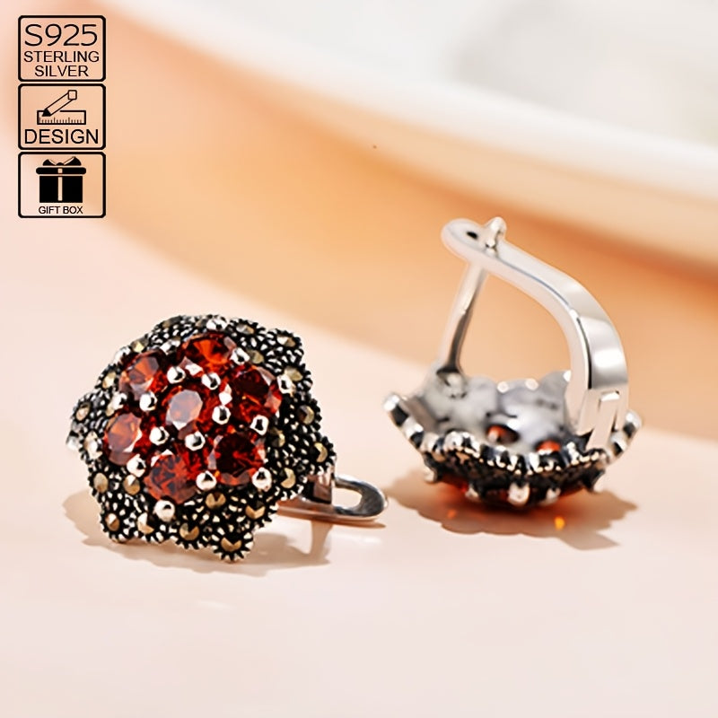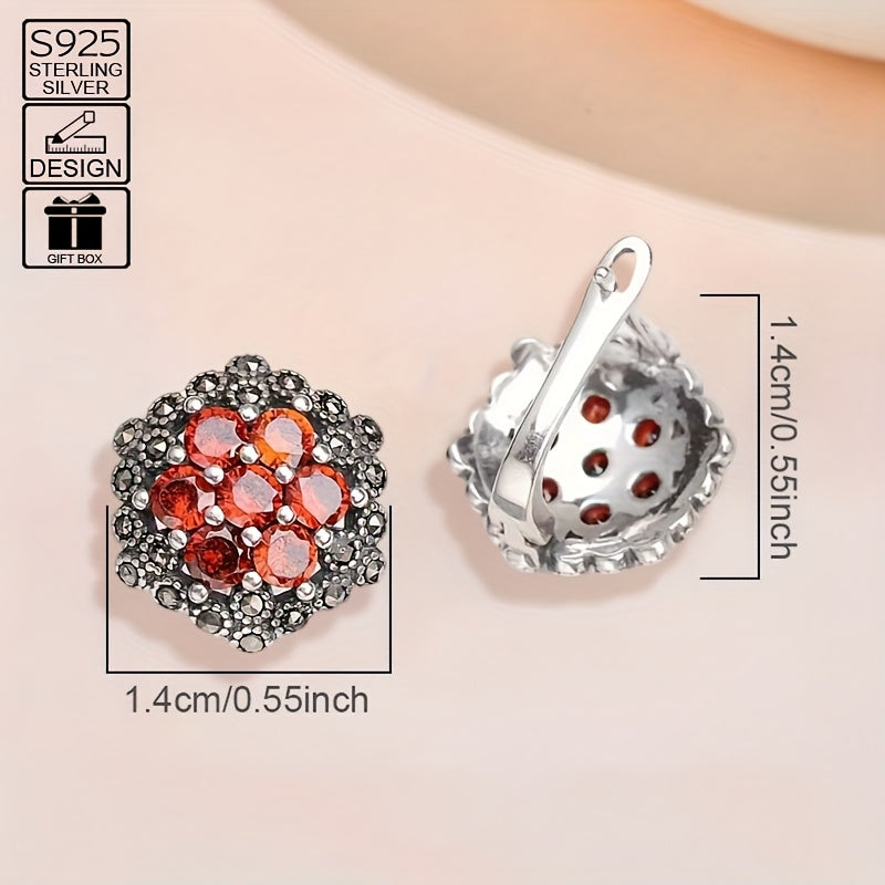 925 Sterling Silver Flower Garnet Earrings Hypoallergenic