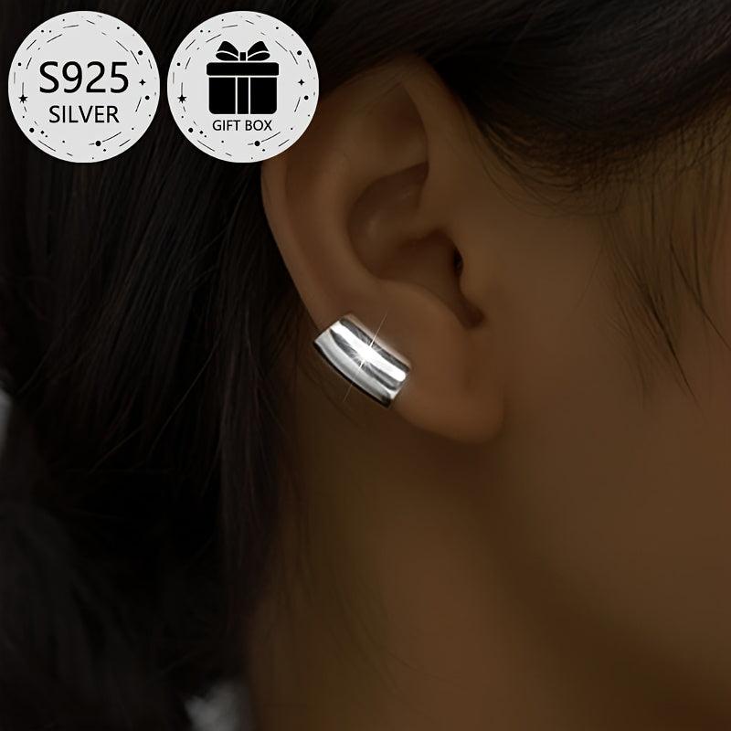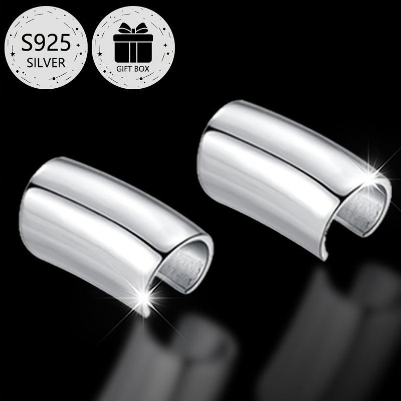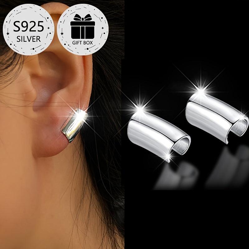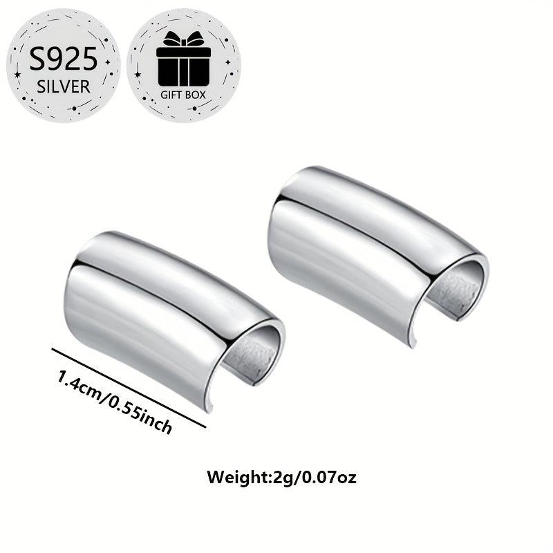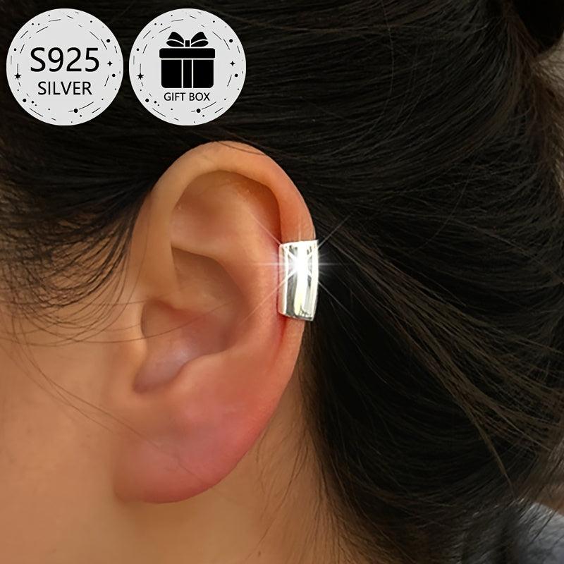 These 925 sterling silver clip-on earrings feature a minimalist geometric design with long bars. The earrings are non-pierced and lightweight at 2g, perfect for everyday wear and special occasions.