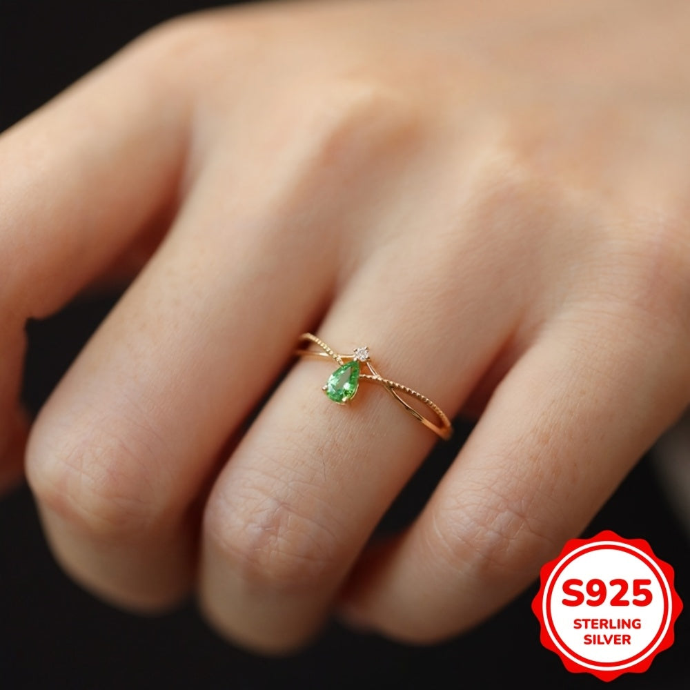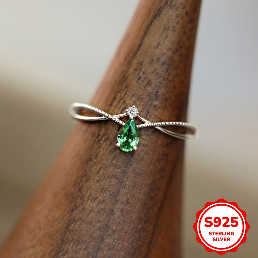 This stunning water drop green synthetic zirconia ring is a dazzling addition to any outfit. Made from 925 sterling silver, this ring is a perfect gift for weddings or special occasions.