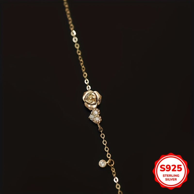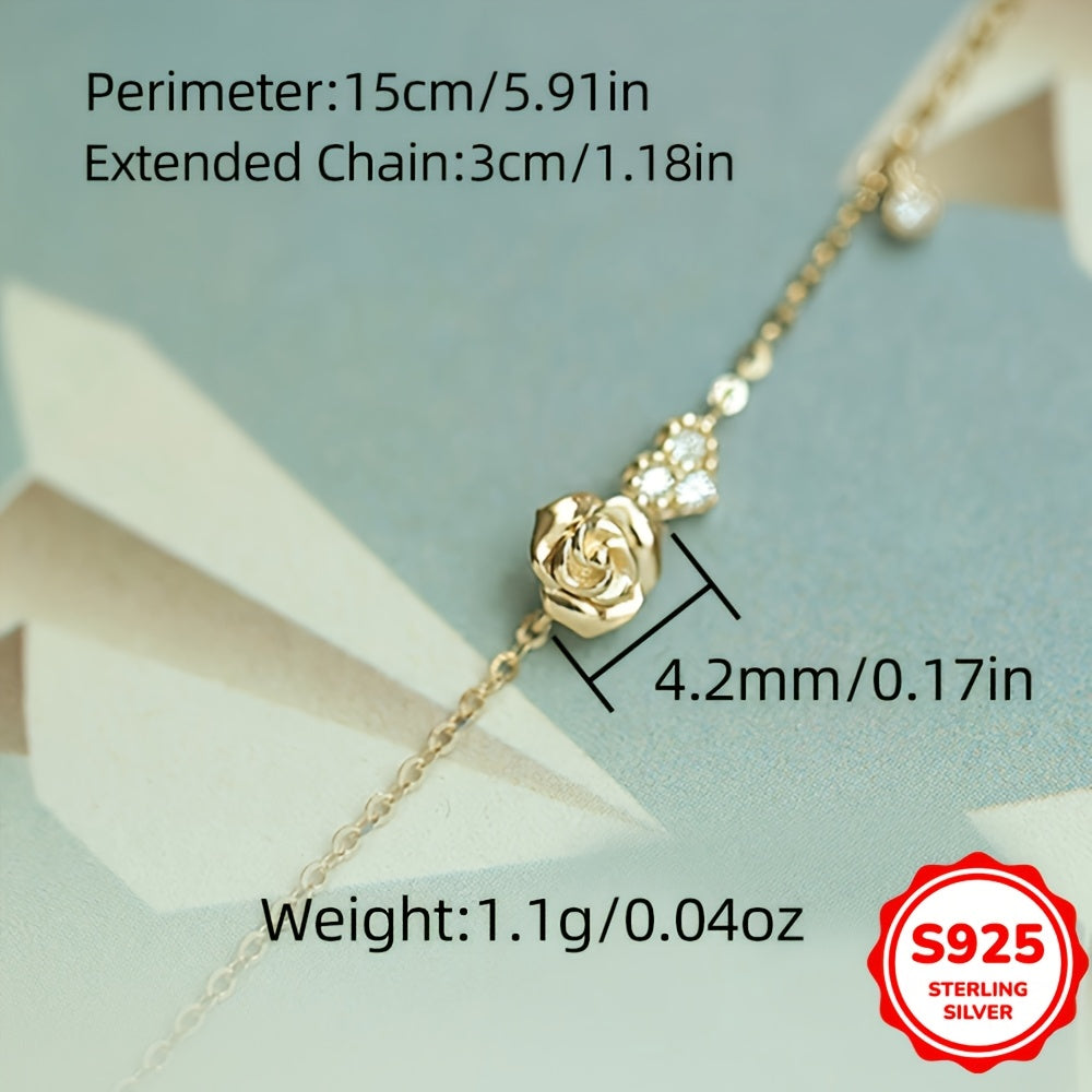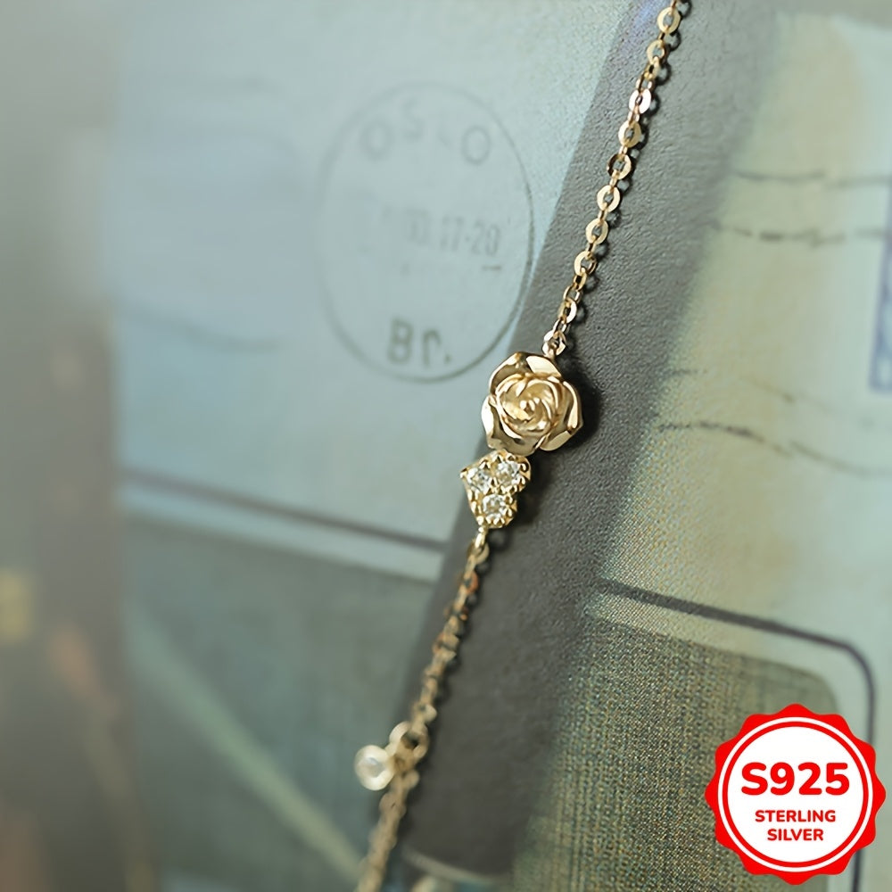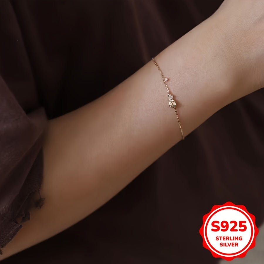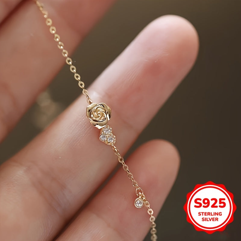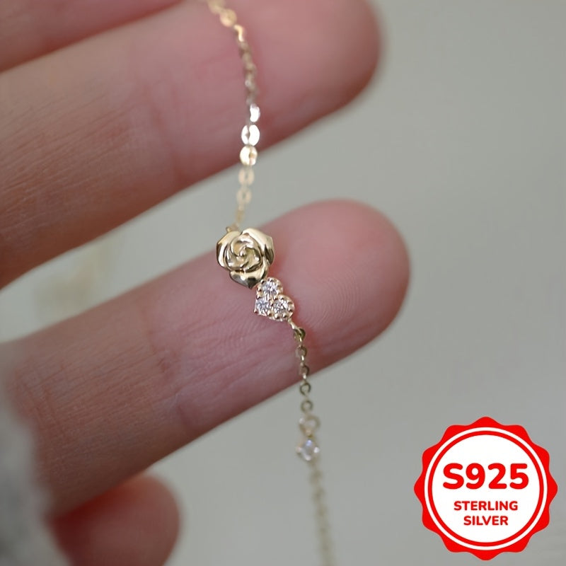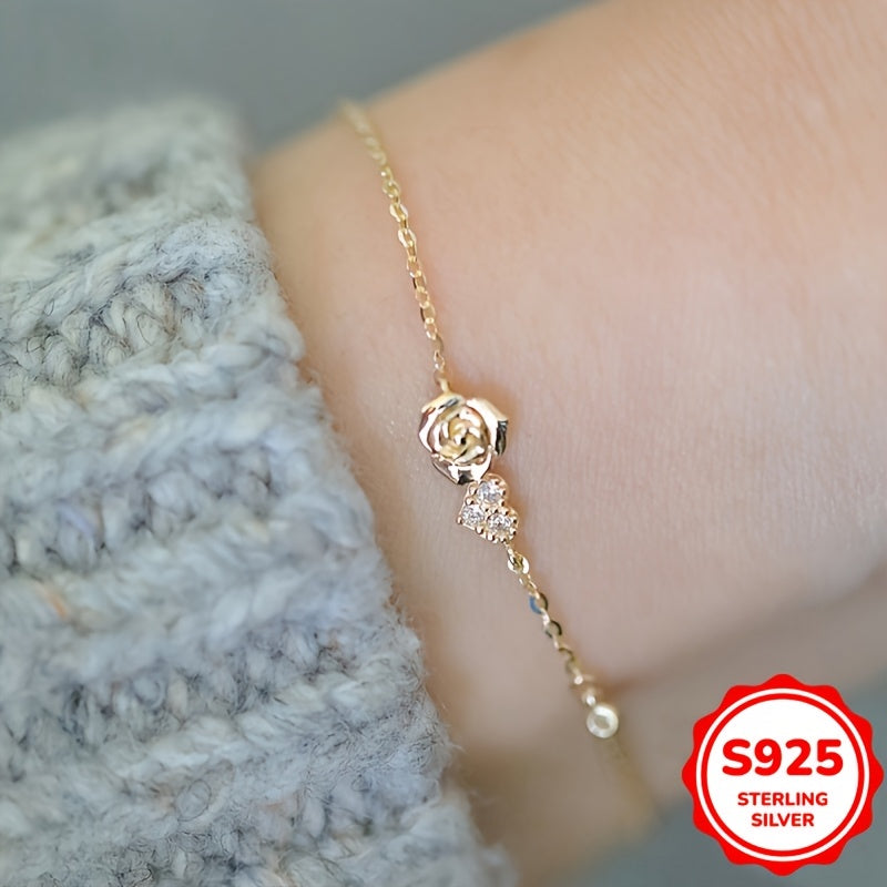 Beautiful hand chain bracelet made of 925 sterling silver with inlaid zirconia, featuring a love heart rose flower design.
