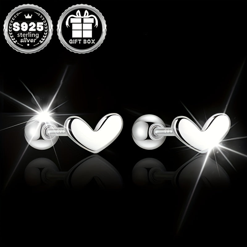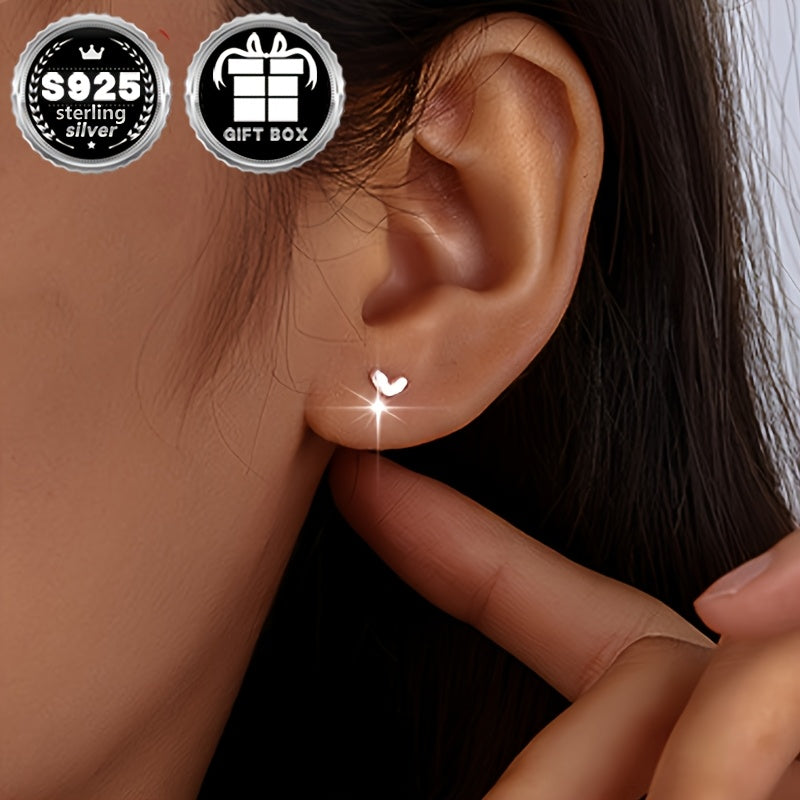 925 Sterling Silver Love Stud Earrings Hypoallergenic