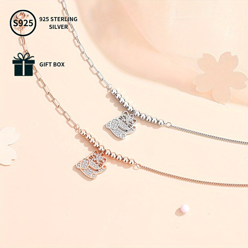 This beautiful 925 Sterling Silver Lucky Cat Bracelet is a perfect gift for friends, girlfriends, and mothers. It is suitable for daily wear, parties, and banquets.