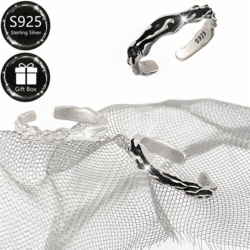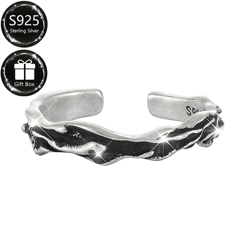 This vintage style ring is crafted from 925 sterling silver, featuring an adjustable design with an irregular texture. Perfect for daily wear and gifting in all seasons.