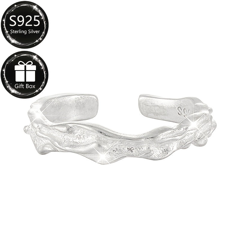 925 Sterling Silver Open Ring for Women Adjustable Irregular Texture Daily Wear