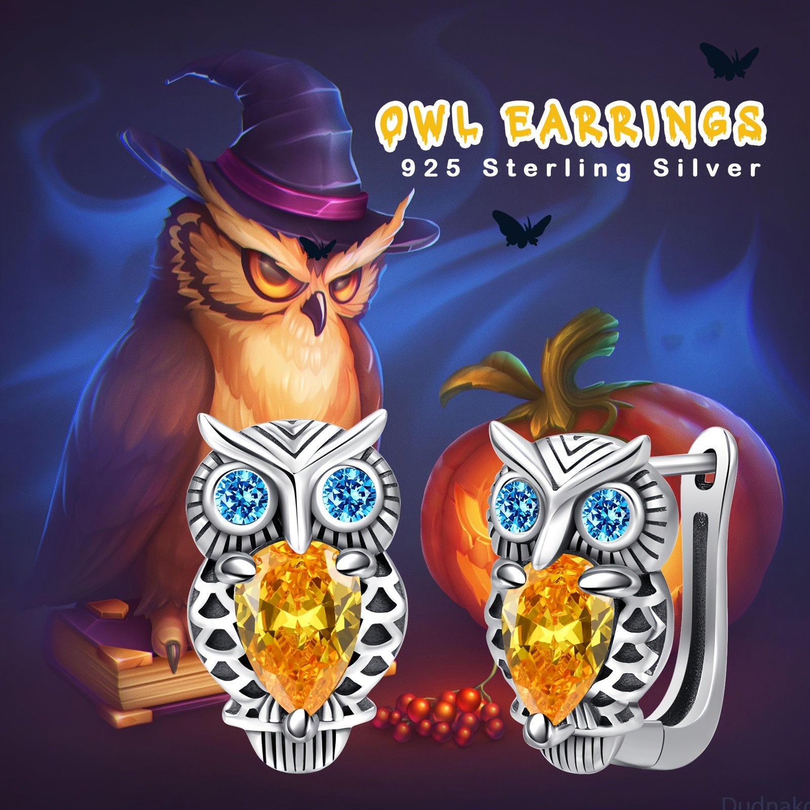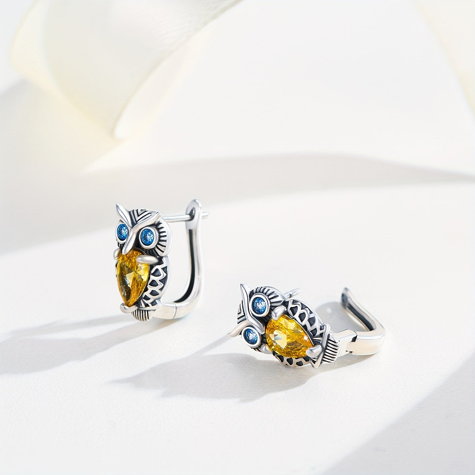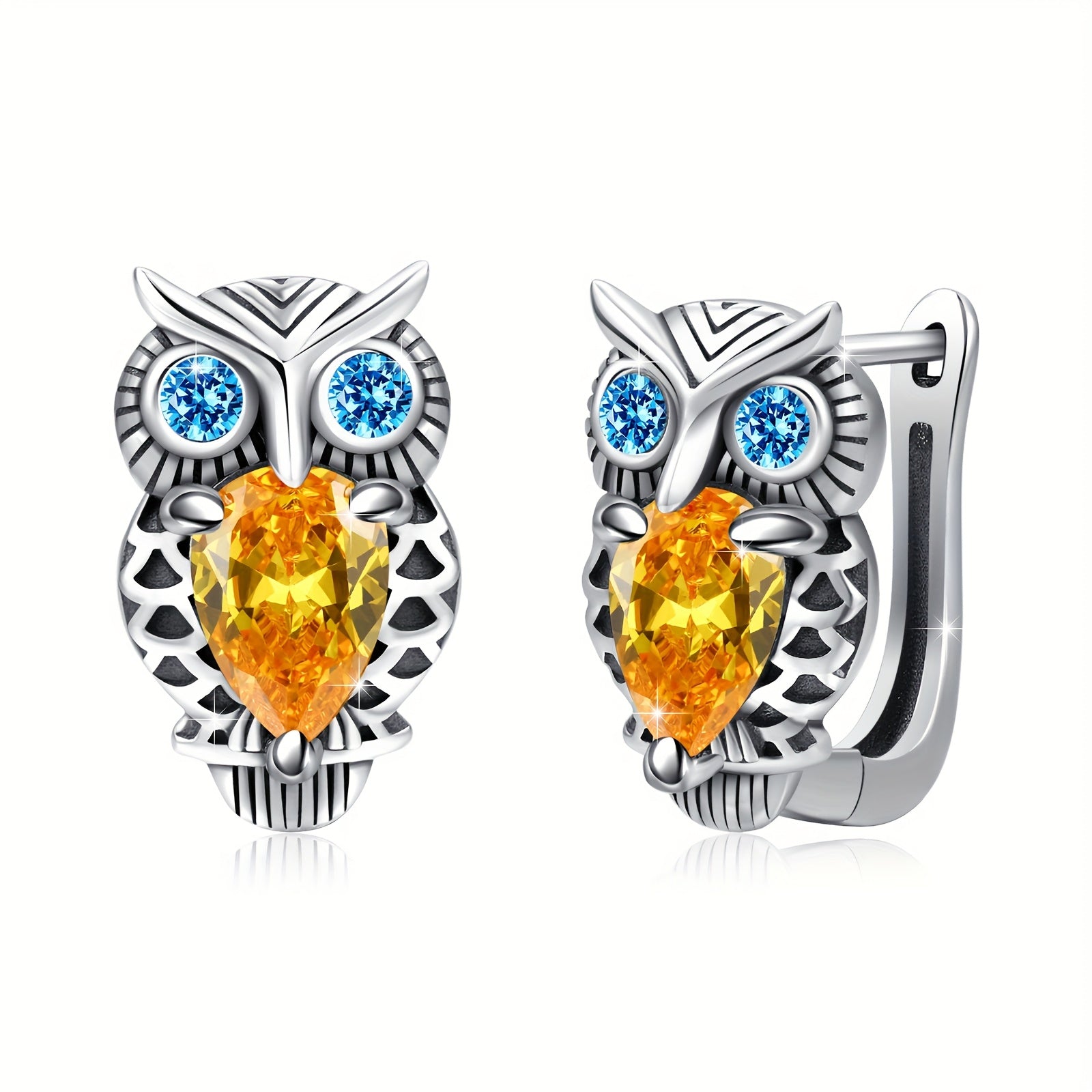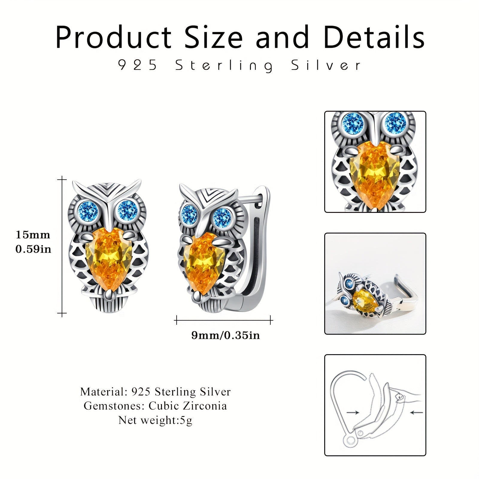 925 Sterling Silver Owl Hoop Earrings with Zirconia Animal Hoop Earrings