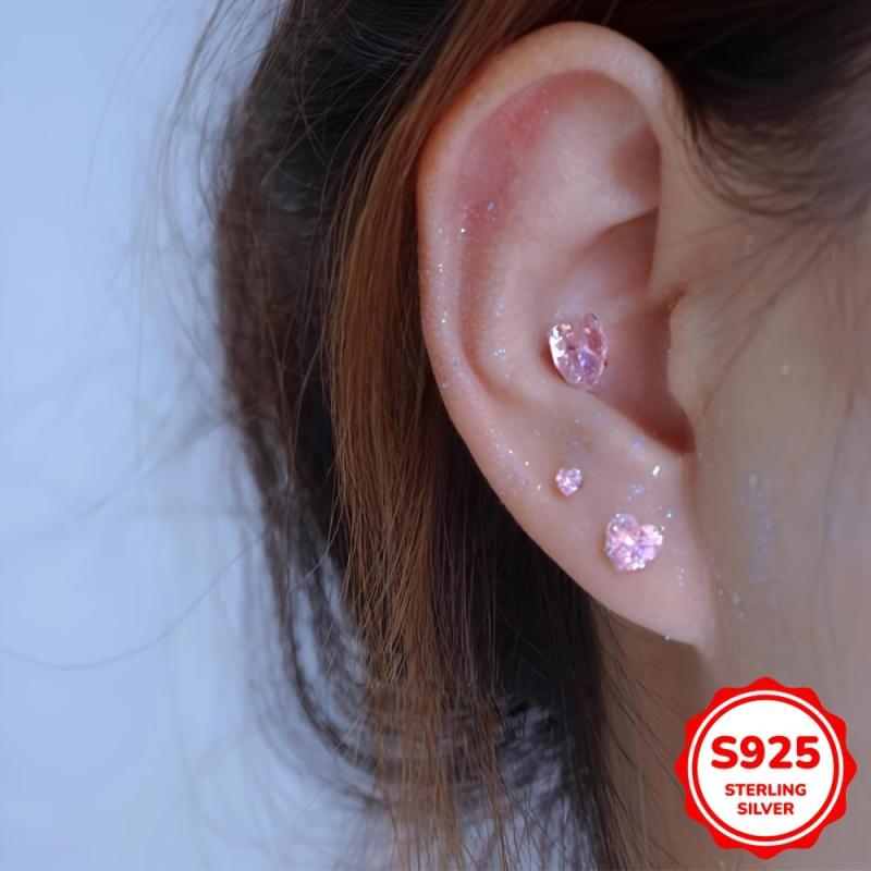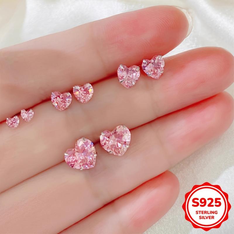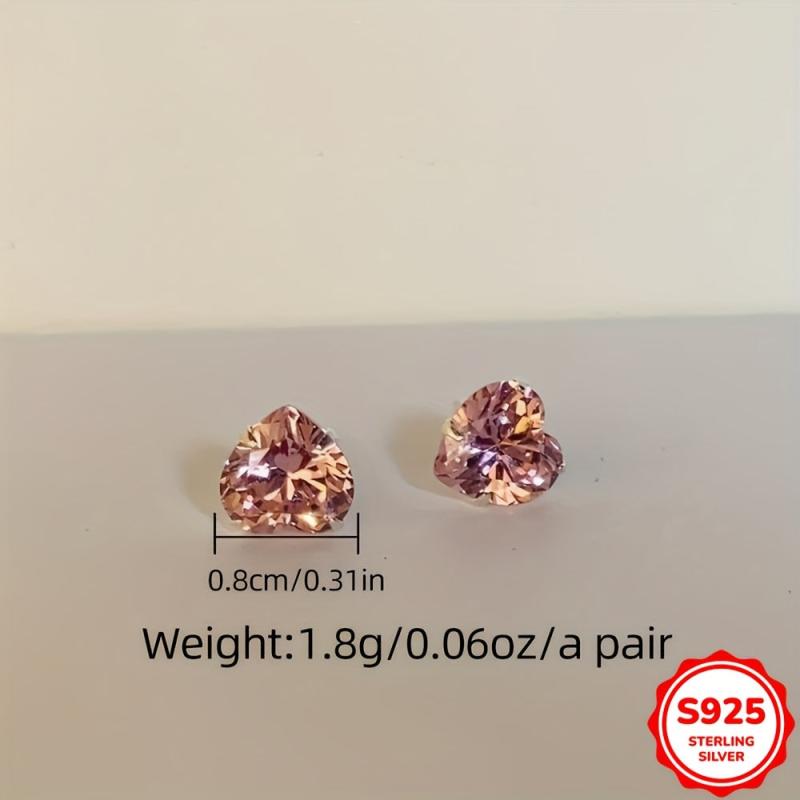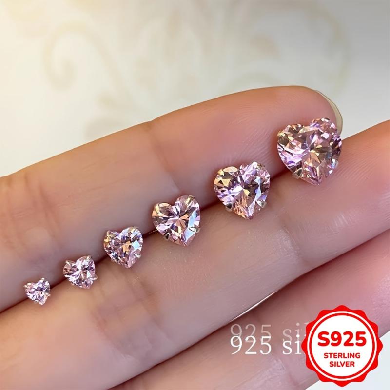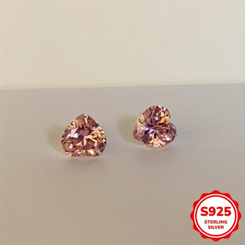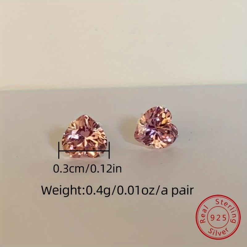 Beautiful heart-shaped stud earrings featuring pink cubic zirconia stones. Made of 925 sterling silver, these earrings are synthetic zirconia lightweight 1G and perfect for daily wear and Valentine's Day.