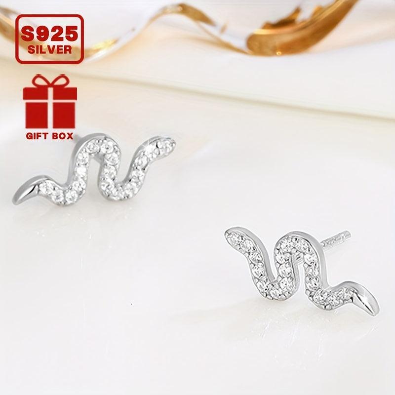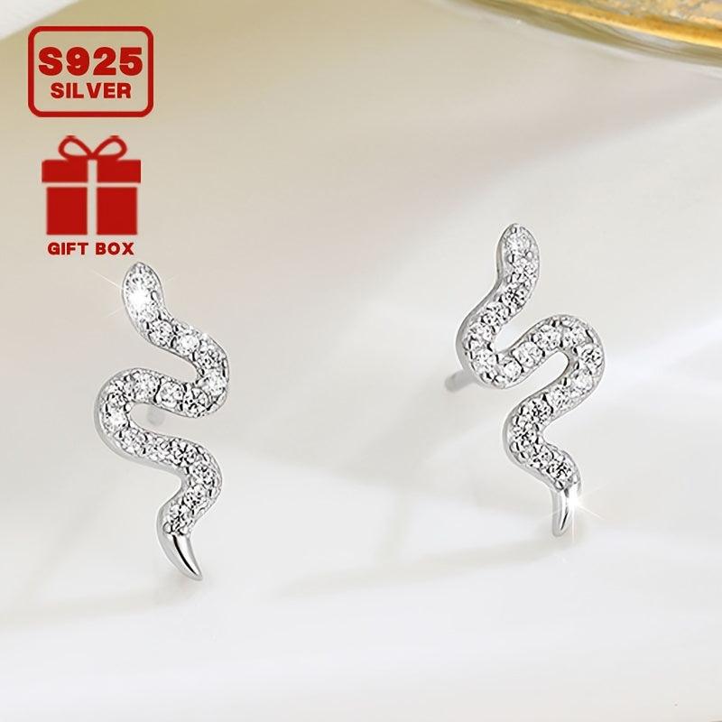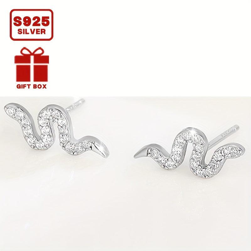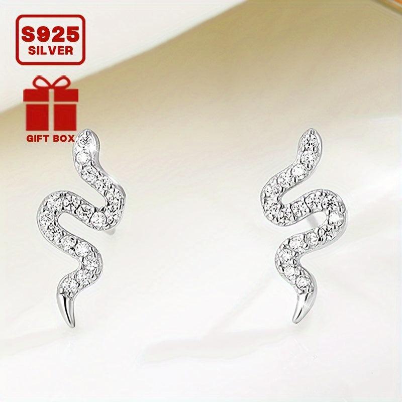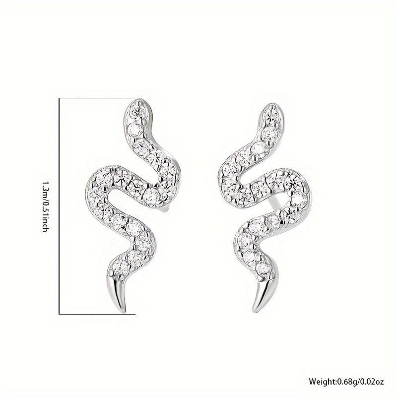 These stunning snake stud earrings are made of 925 sterling silver and feature synthetic cubic zirconia for a touch of sparkle. They are lightweight at 0.68g and are perfect for all-season wear. They make a great addition to your daily wardrobe or as a gift for a loved one.