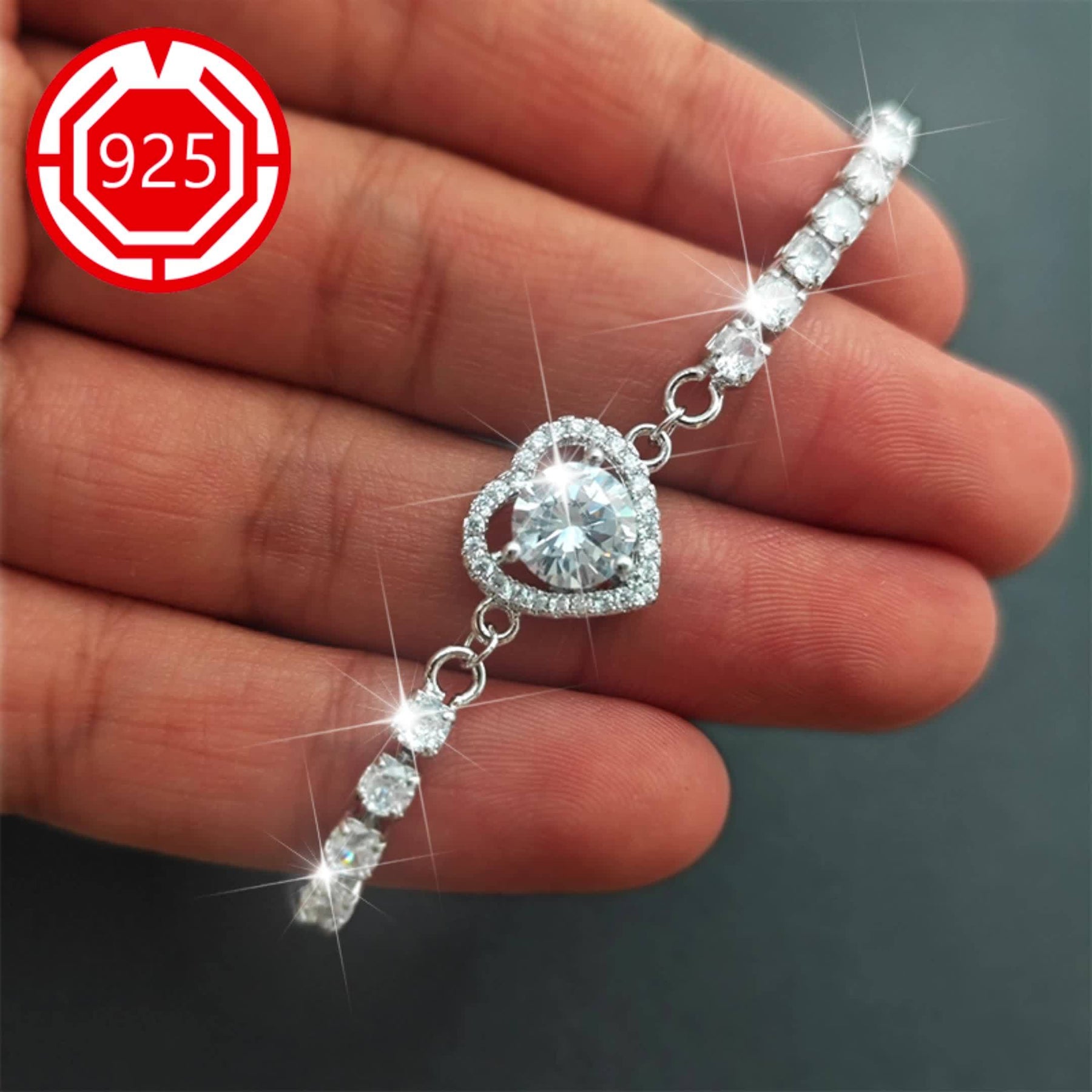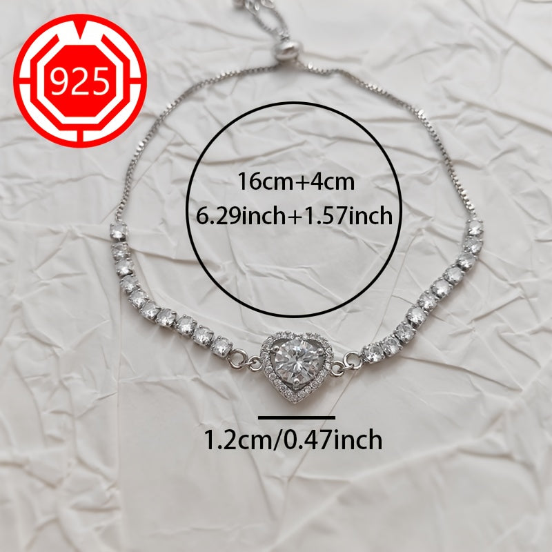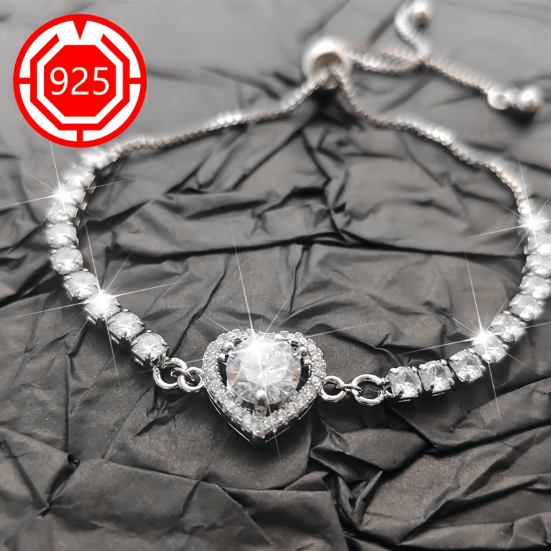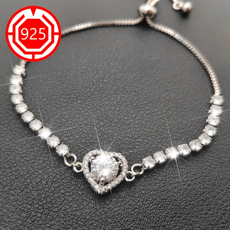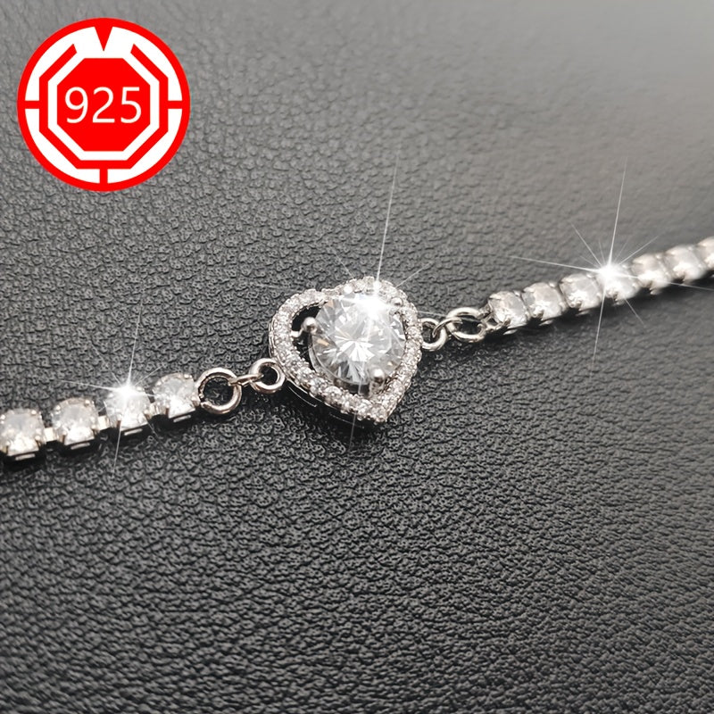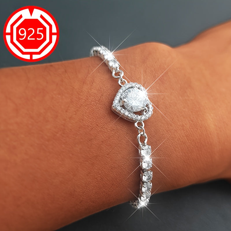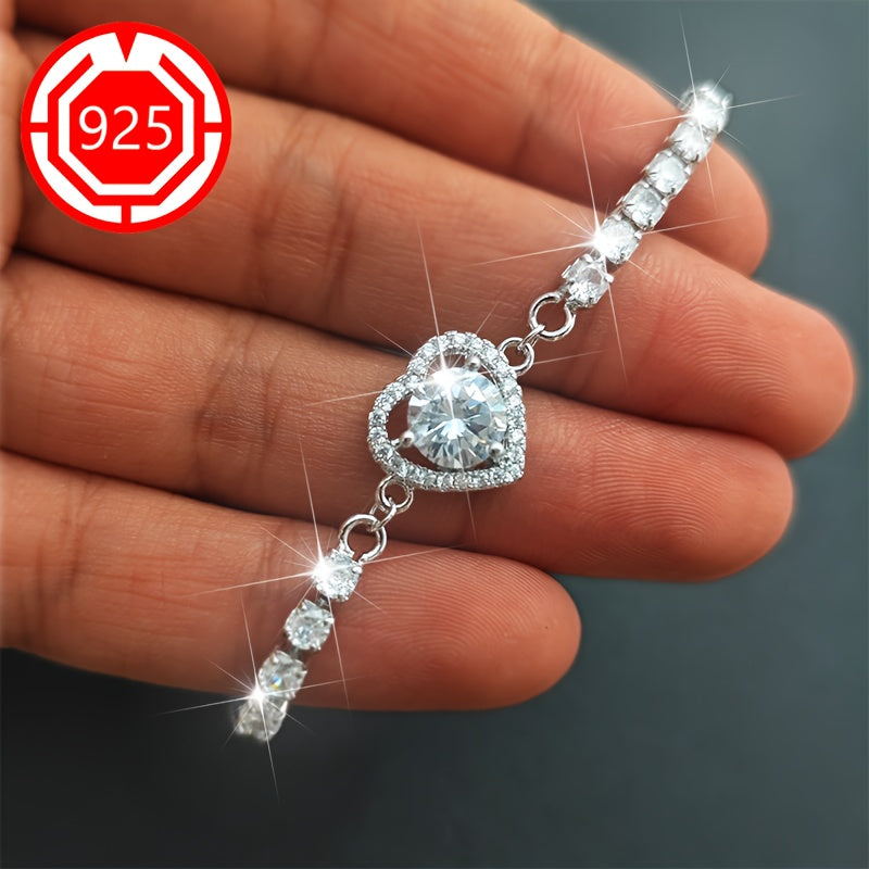 This stunning 925 sterling silver heart bracelet features sparkling moissanite stones. It is perfect for a festive gift for your girlfriend and comes in an anti-tarnish box.