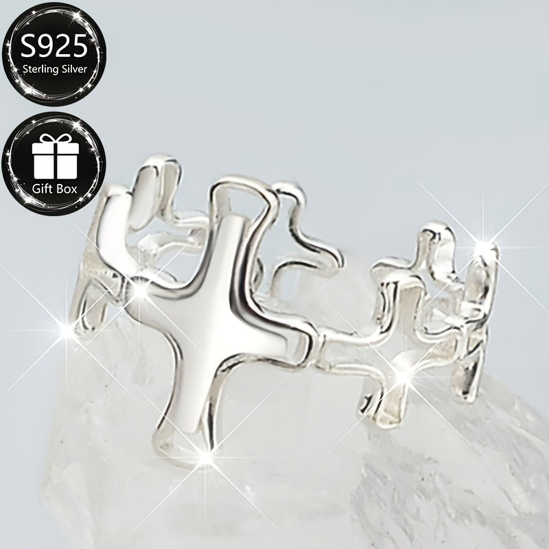 This open ring features a hollow cross design in 925 sterling silver, perfect for daily wear and parties. It weighs 9g and adds a touch of personality to any outfit.