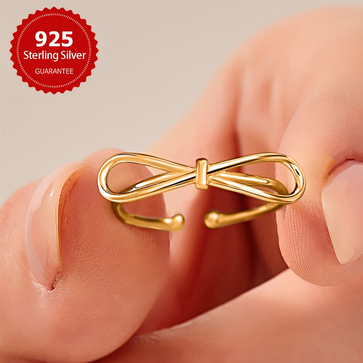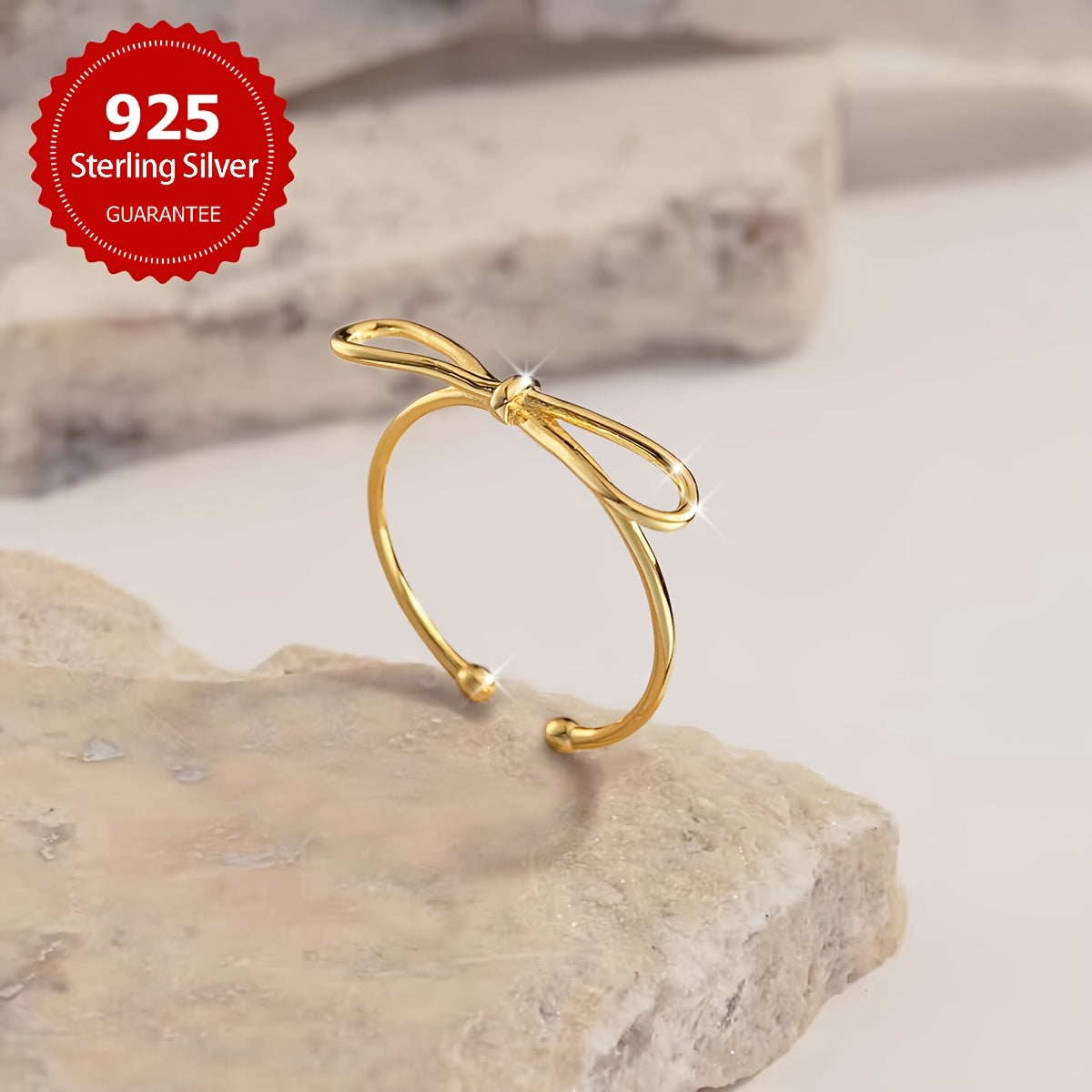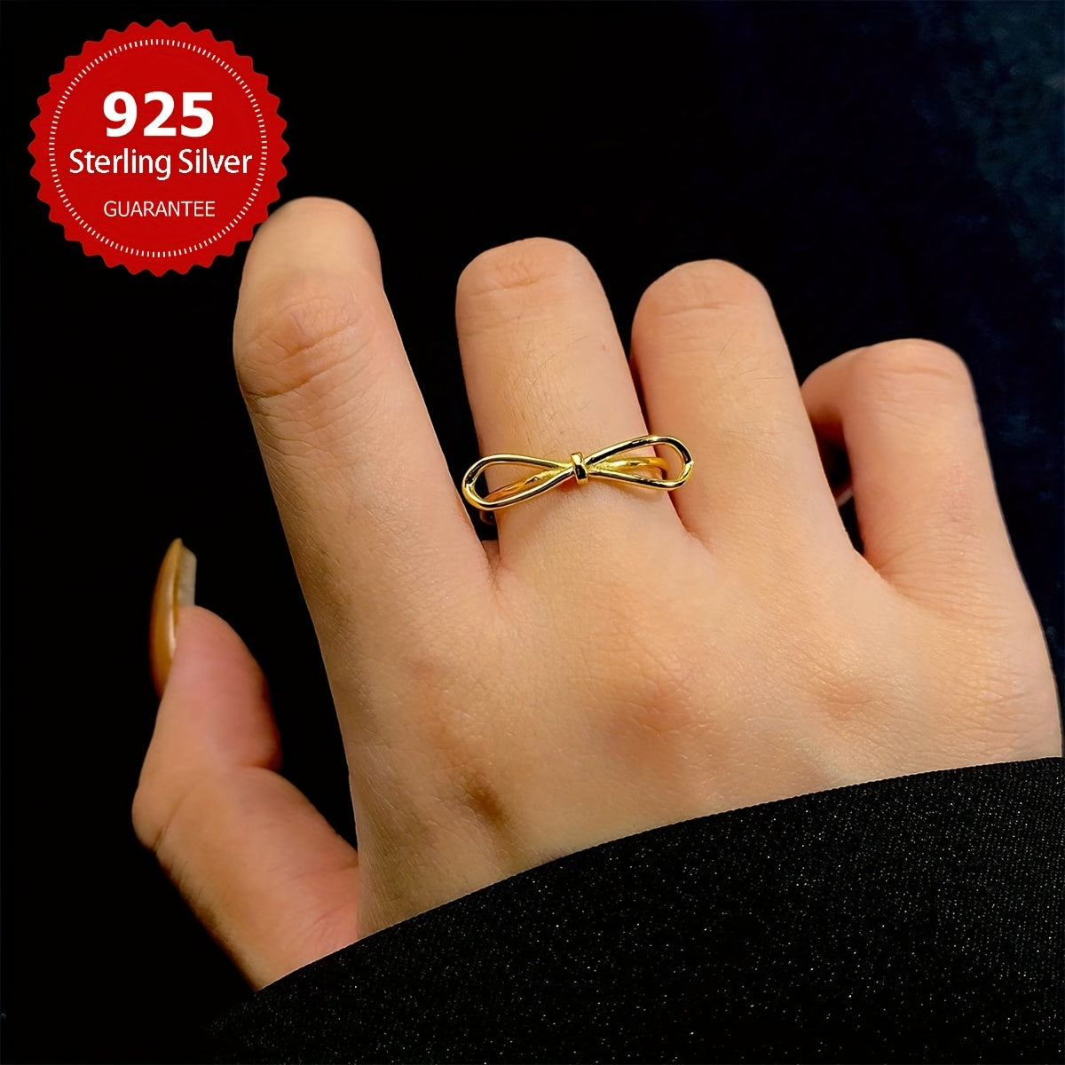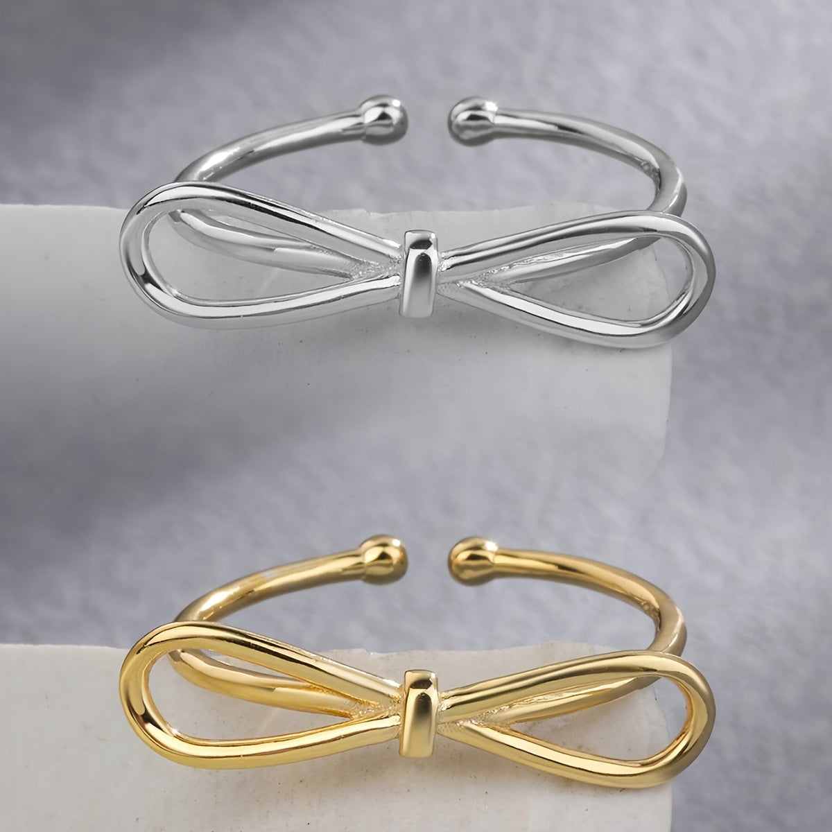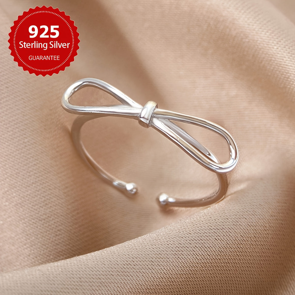 Adjustable Bow Ring S925 Sterling Silver Women Rings for Girls