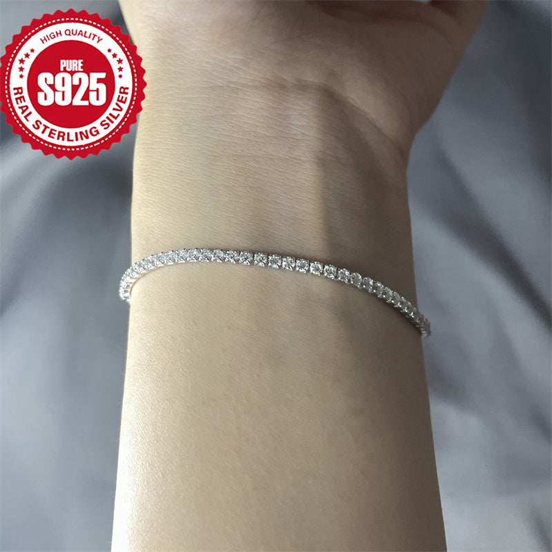 Adjustable Chain Bracelet with S925 Pure Silver Zirconia Tennis Bracelet