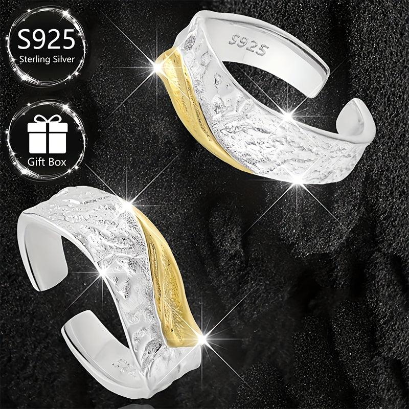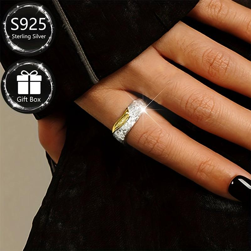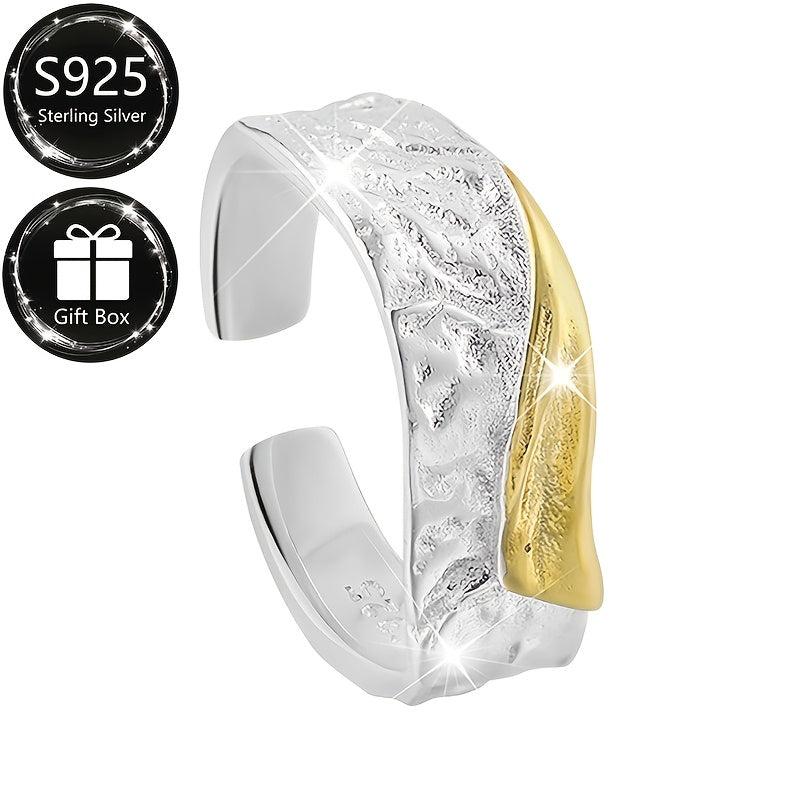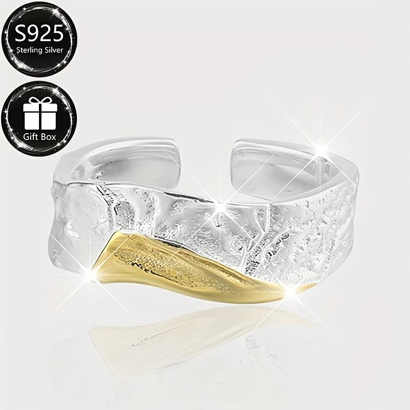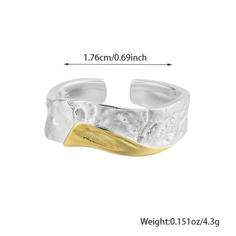 This stylish ring is made of 925 sterling silver with a textured two-tone finish. Its irregular geometric design makes it perfect for banquets and gifting throughout all seasons.