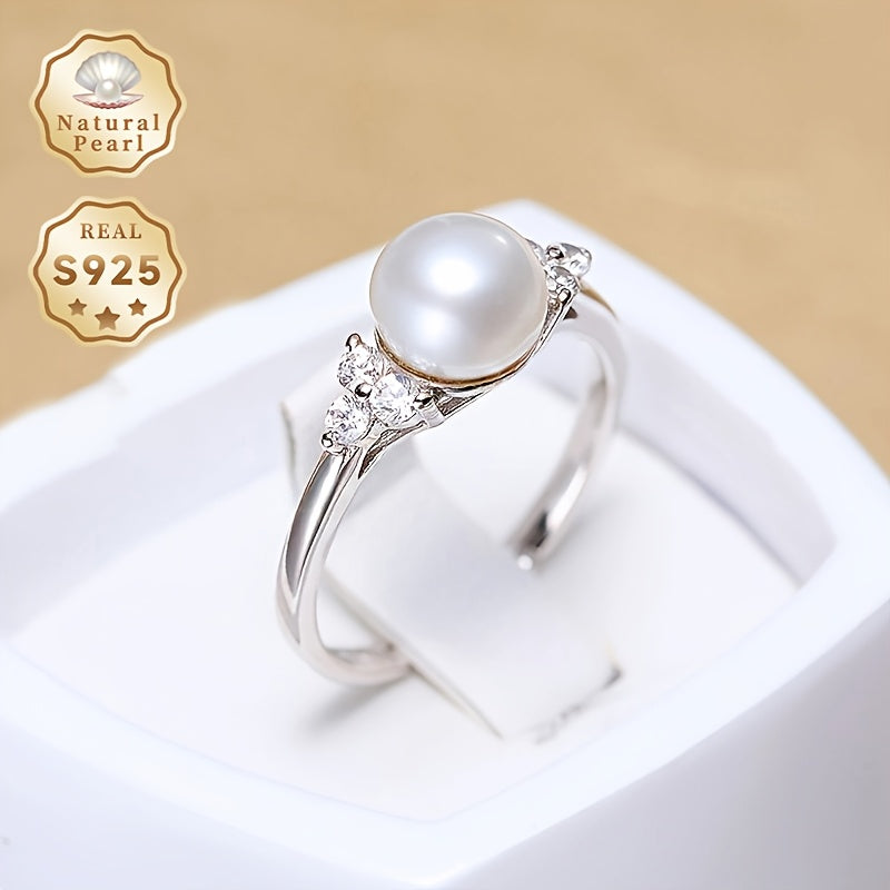 This elegant ring features a natural freshwater pearl on a silver band. Perfect for weddings and as a Valentine's gift.