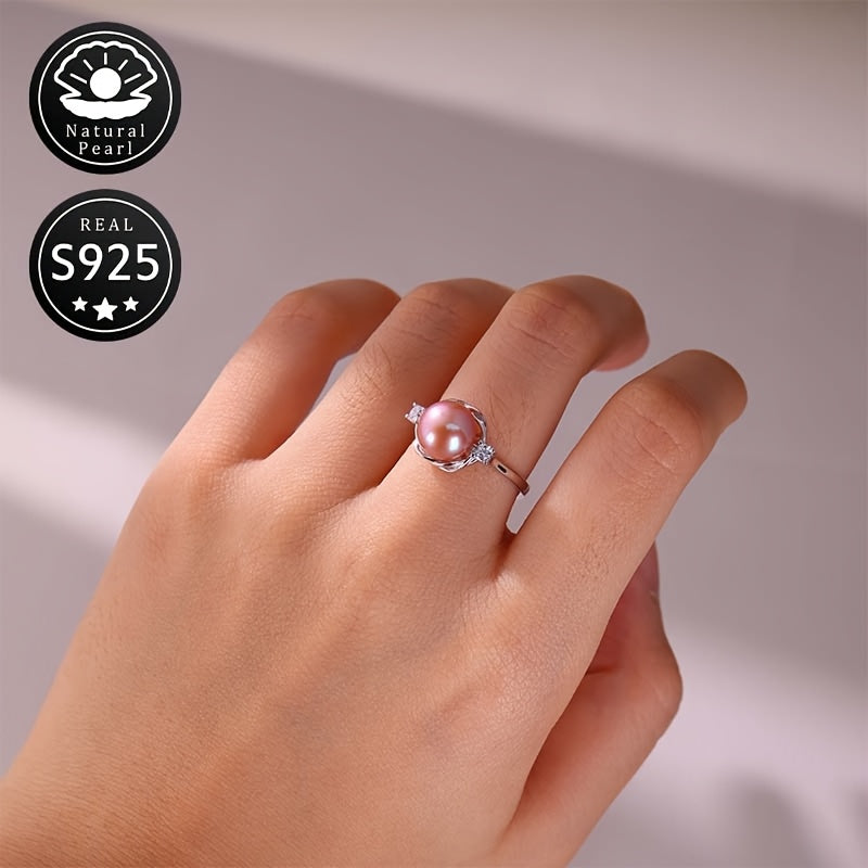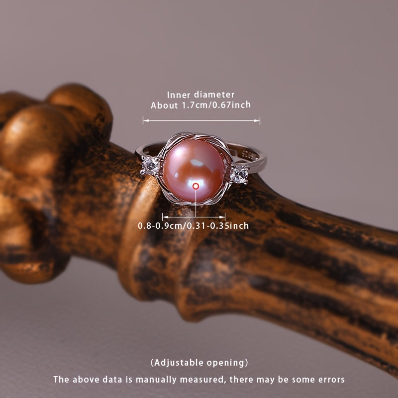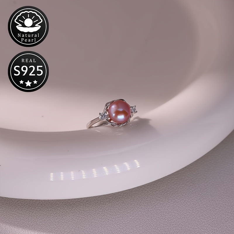 This adjustable ring features a stunning 8-9mm purple flat round natural freshwater pearl, making it a perfect accessory for daily wear or as a gift. Crafted from high-quality S925 silver.