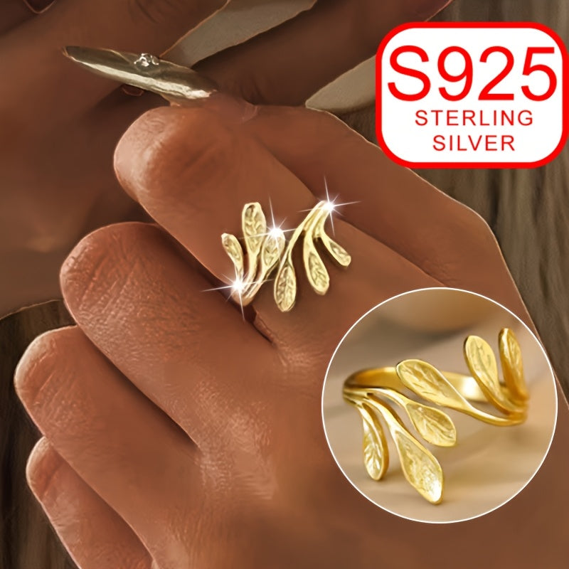 This fashionable open ring is perfect for ladies who want a stylish accessory. Made of S925 silver, this ring features vine leaves for a chic look.