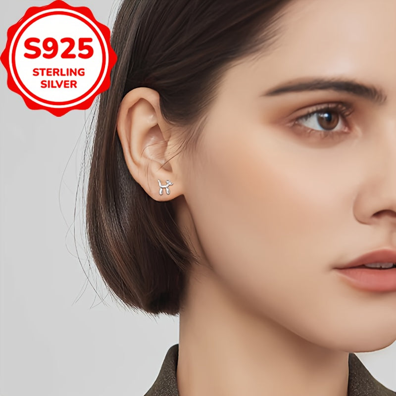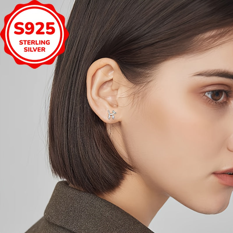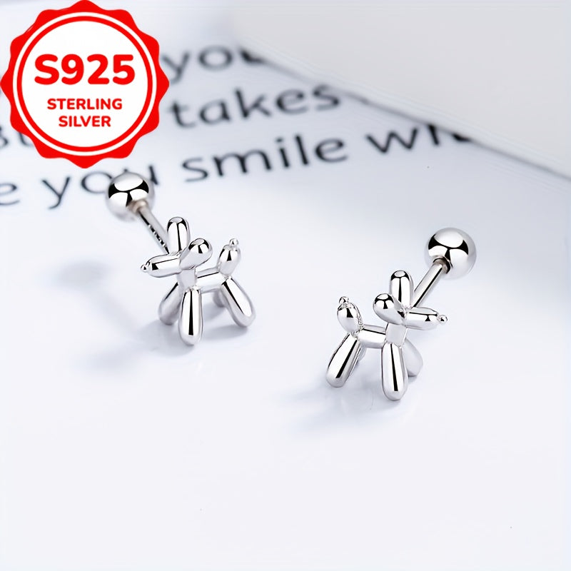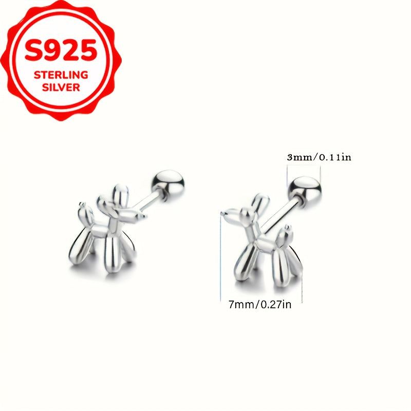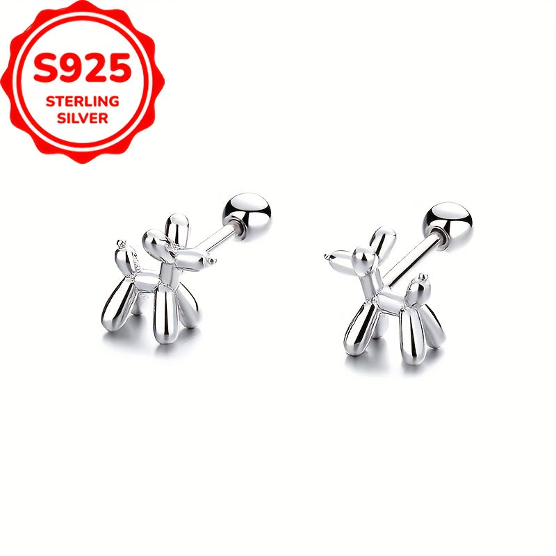 These adorable earrings feature a balloon dog design, made of S925 silver. Perfect for animal lovers, these cute ear studs are a great addition to any jewelry collection.