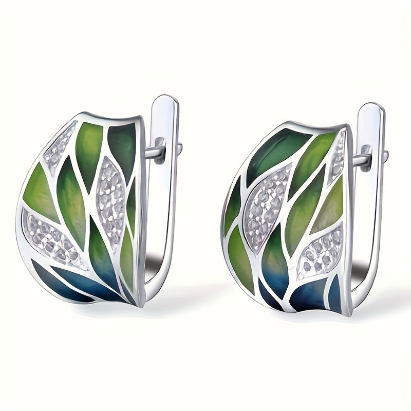 Add a touch of bohemian flair with these stylish hoop earrings. Made of 925 silver plated copper featuring synthetic zirconia and green enamel. Perfect for daily wear and a great gift for April birthdays.