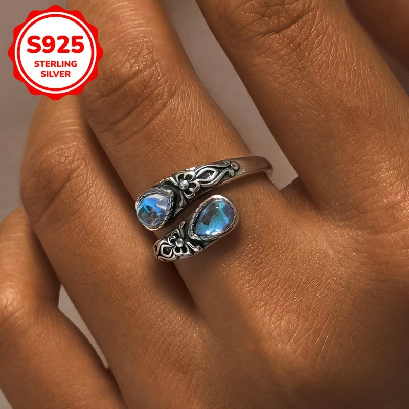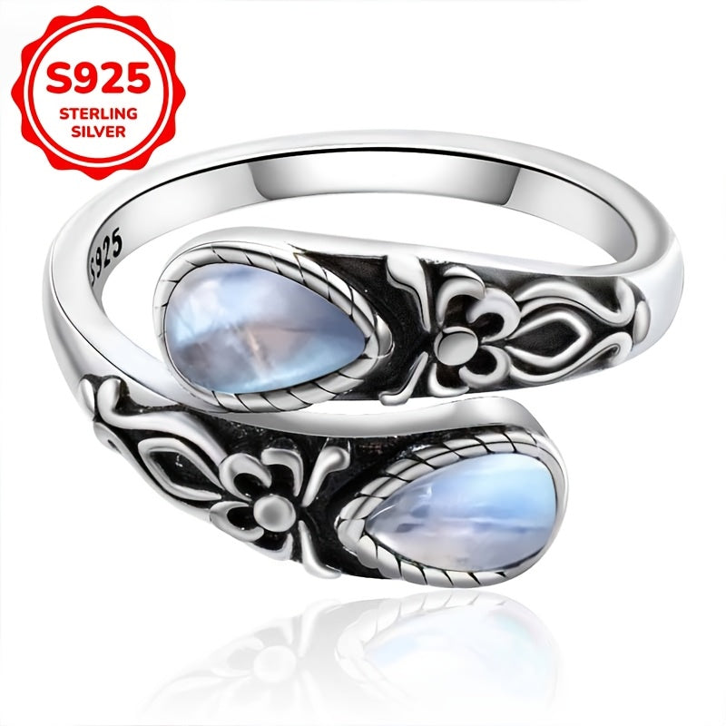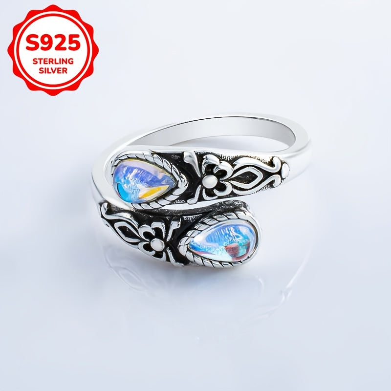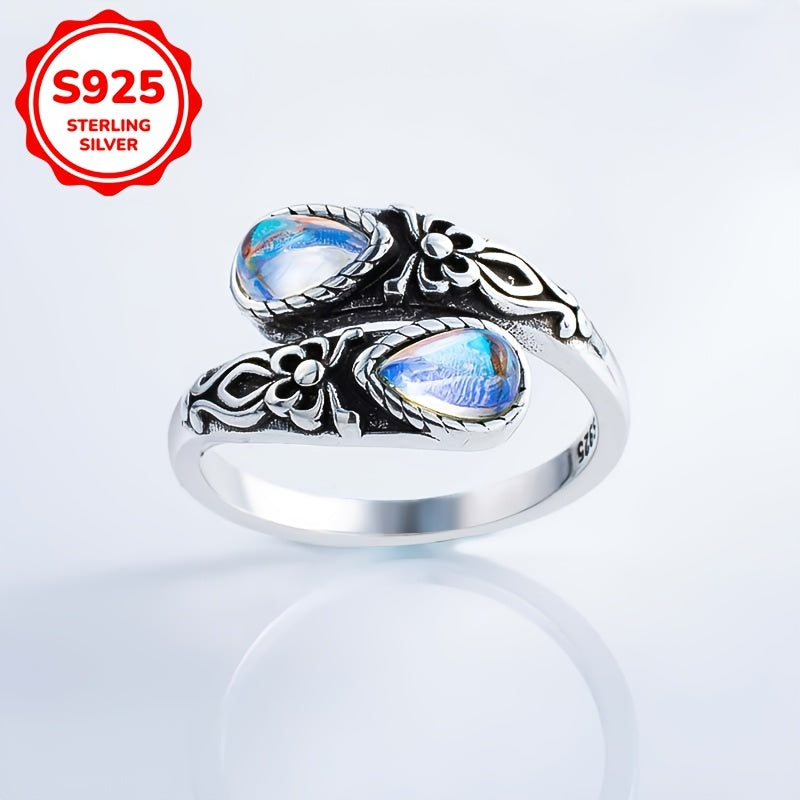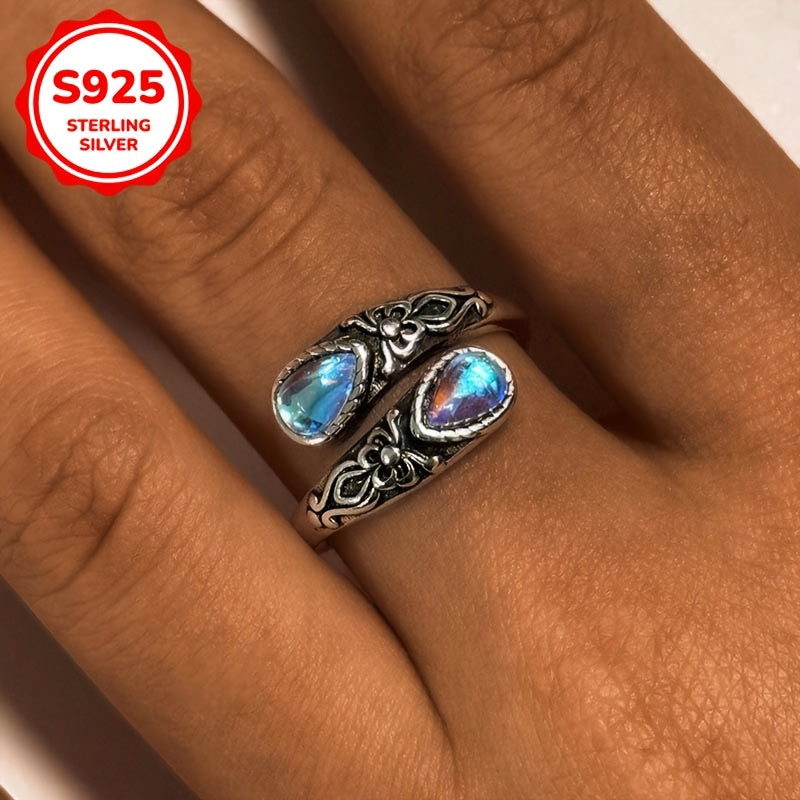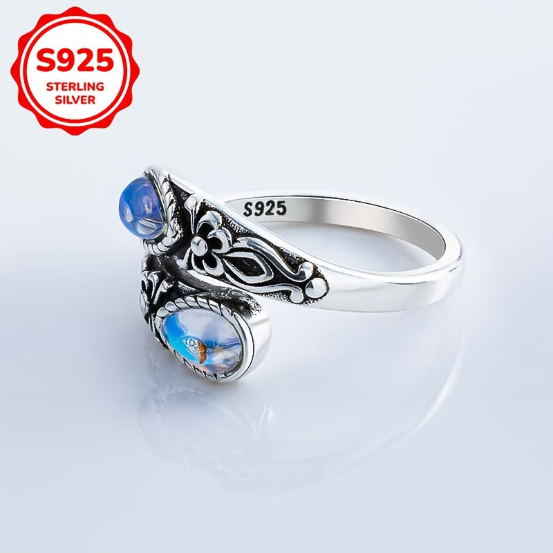 Elegant set of women's rings featuring a creative bow design with synthetic moonstone. The personalized spoon ring is made of 925 silver, weighing 3g. Perfect for everyday wear or as a thoughtful gift.