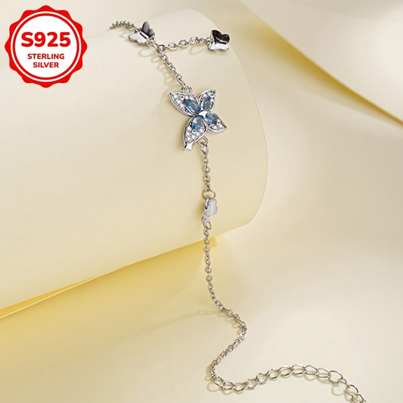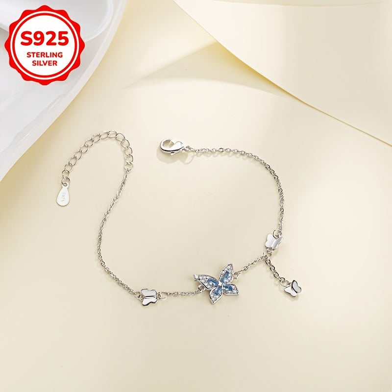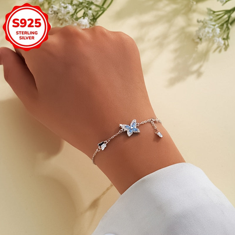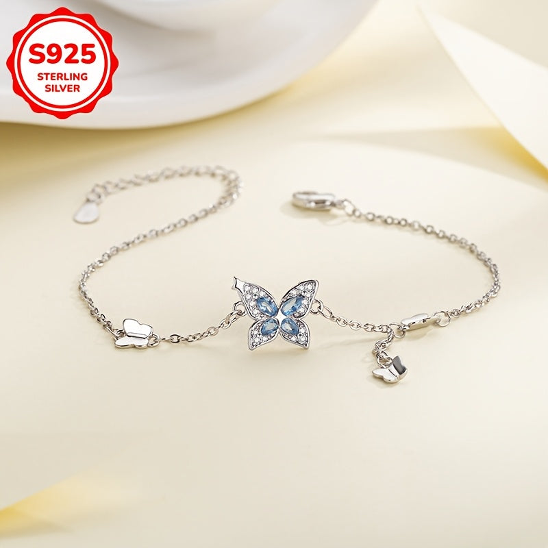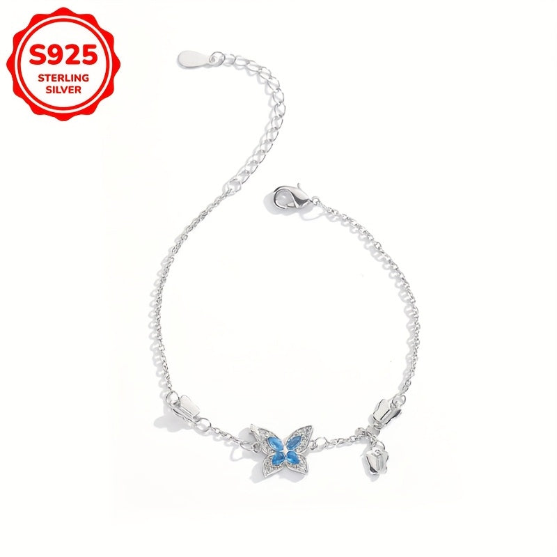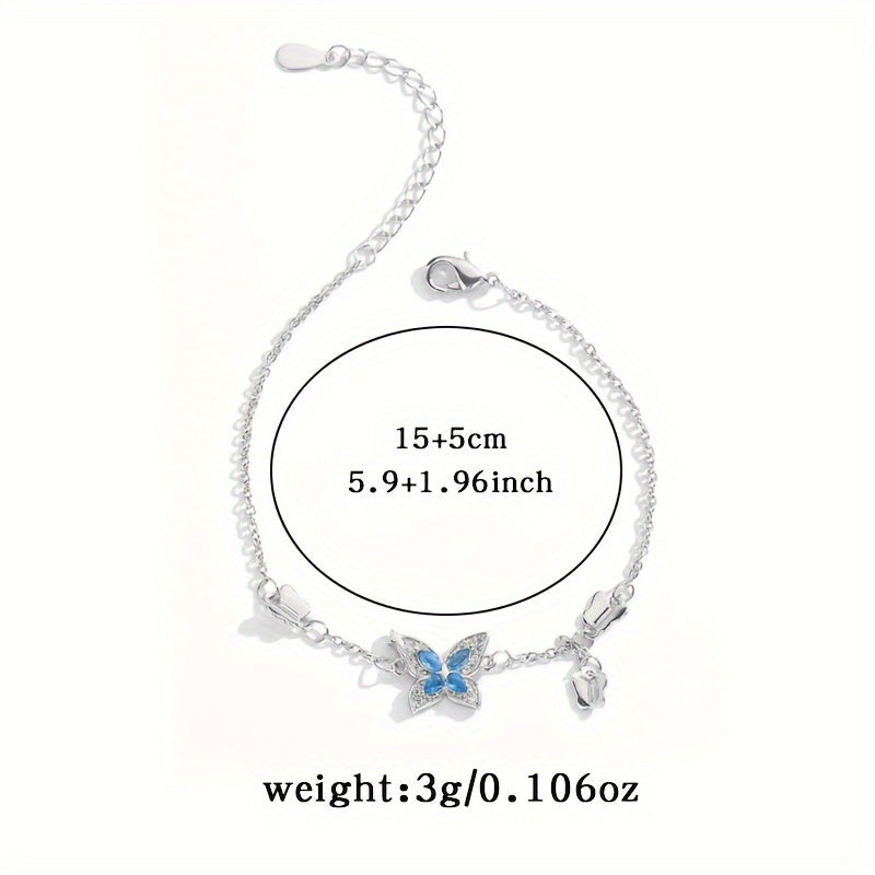 Elegant bracelet featuring a butterfly design with synthetic zirconia inlays. Made of 925 silver, weighing 3g. Perfect for daily wear or as a thoughtful gift.