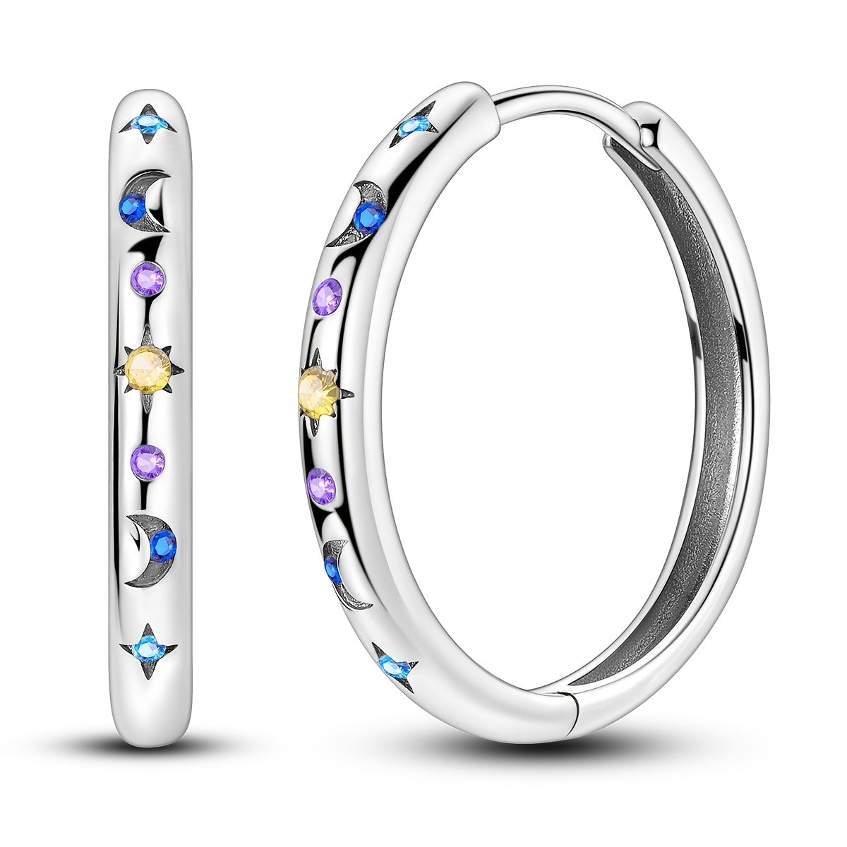 Elevate your style with these celestial inspired hoop earrings, crafted from copper with synthetic zirconia detailing. Perfect for daily wear and special occasions.