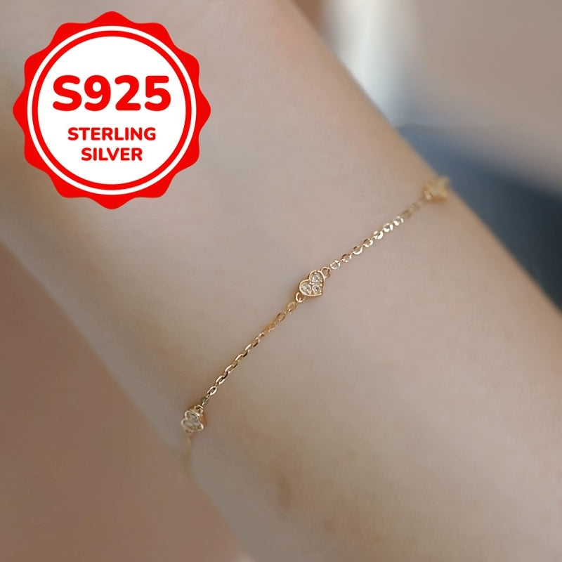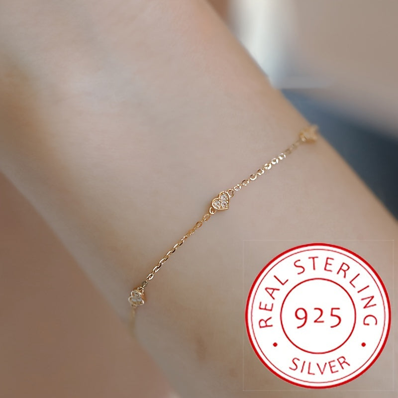 Celestial CZ Heart Bracelet, 925 Silver