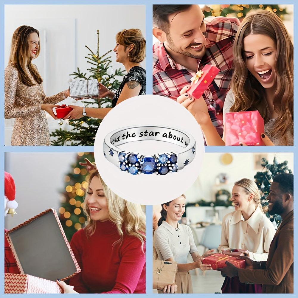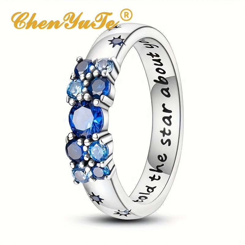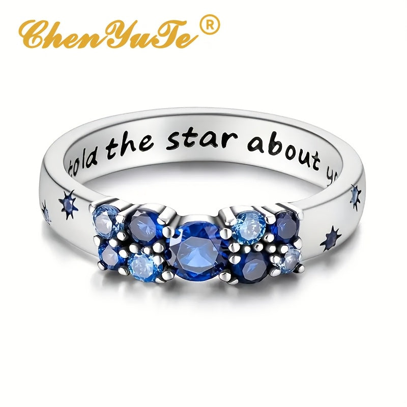 ChenYuTe 925 Silver Ring Cubic Zirconia Star Bold as a Star Inscription