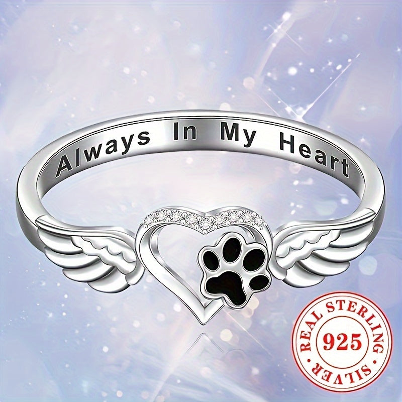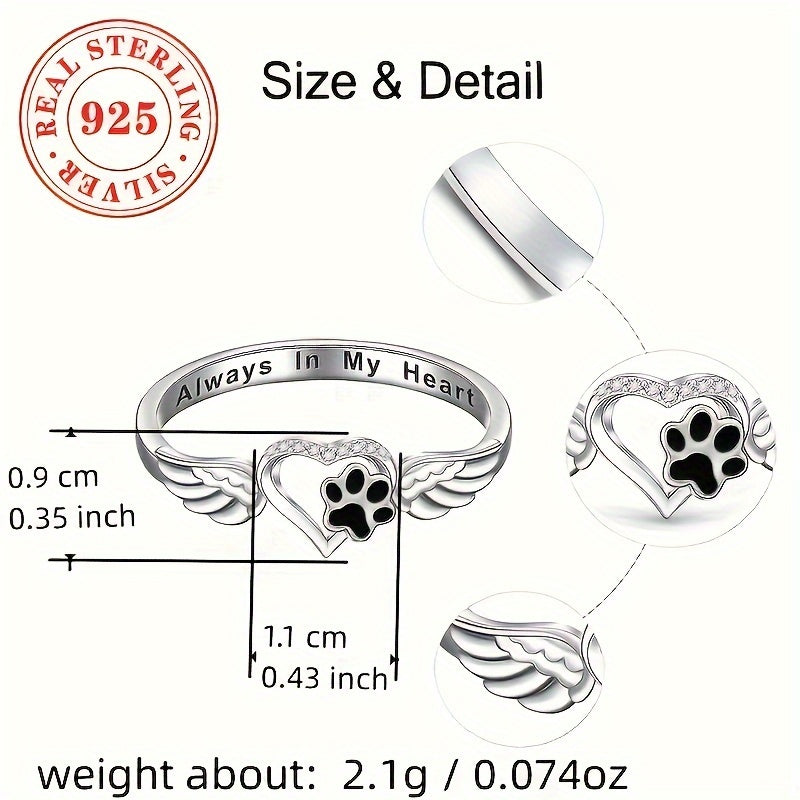 Express your personality with this unique 925 Sterling Silver ring featuring creative wings and animal footprint engraving. A great statement piece for parties or daily wear, suitable for both men and women. Makes a thoughtful gift for any occasion.
